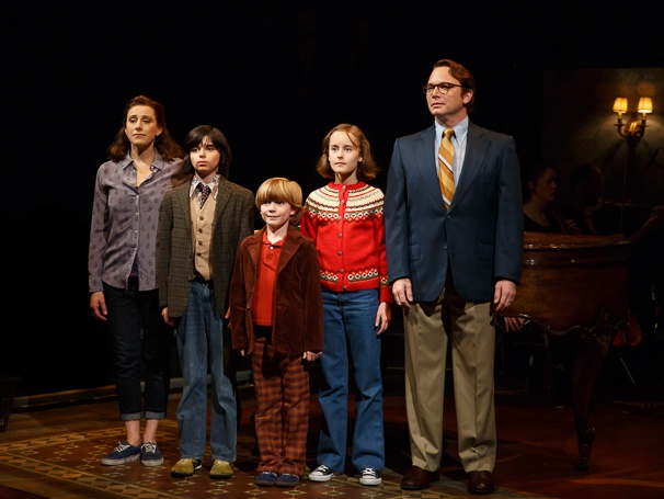 Such a lovely wonderful home to be welcomed into on Maple Avenue as this incredibly talented cast sing to us in the opening moments of Fun Home. So perfectly restaged by director, Sam Gold in this transfer from The Public Theater to the Circle in the Square, Broadway. And the amazing design team of David Zinn (Scenic & Costume Design), Ben Stanton (Lighting Design), and not to leave out the indispensable Faye Armon-Troncoso (Props & Set Dressing) who altered the piece from proscenium to theater in the round. We are ushered into the family and to the upbringing of a lesbian comic artist, played so beautifully by the three actors, Beth Malone (Alice), an incredible Emily Skeggs (Middle Alice), and an endearing Sydney Lucas (Small Alice). We bear witness to the blossoming of one character, and the unraveling of another. And a painful exploration of the why and the what. Did her coming out send her father down in? Or was it just a matter of timing and coincidence as he once again tried to save, rebuild,and eventually overwhelmed by another broken down house sadly in need of repair.