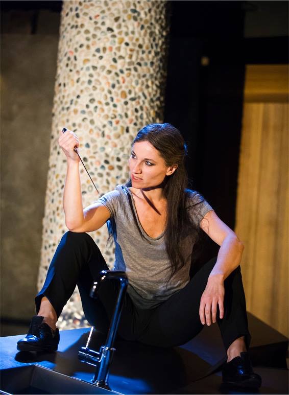 In the last instalment of their Greek tragedy season, the Almeida Theatre brings Rachel Cusk’s version of Medea. A play that explores the limits of the female psyche when pushed to the extreme by the abandonment of the paterfamilias, the very fracture of the family structure and the traditional values that sustain a patriarchal society. This adaptation of Euripides’s tragedy transports the audience to a very contemporary home setting where Medea’s breakdown and the upside down world she now inhabits unfolds in a literally tilted domestic setting (the clever work of set designer Ian MacNeil) that seems to reflect her unstable personality. Medea is superbly played by Kate Fleetwood whose temperament swings from angrily heartbroken quickly morphing into a pathetic neediness towards her ex-husband Jason, played by Justin Salinger. Cusk maintains most of the main elements of the original piece while cleverly updating the domestic situations surrounding the way in which the action develops. For instance, the audience learns from the outset that Jason has left the protagonist and has asked her for a divorce. Here the tension between Medea and her ex-husband is built up during discussions that range from having to sell the family home and splitting all their possessions, to having to battle for the custody of their children. By the same token, most of the exchanges between the pair will be dramatised through phone exchanges in which the actors narrowly avoid each other on stage.