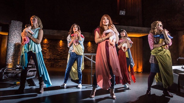 There are certain narrative devices that work really well in this adaptation. Perhaps, one of the cleverest is the fact that the female chorus becomes a group of “yummy mummies” (clearly identifiable as middles class mums who meet for coffee after the school-run) who waste no time to pass judgement and criticise Medea’s actions towards both her ex-husband and her own children. Furthermore, positioning the protagonist as a fairly-famous writer might derive from Cusk’s own anxieties as a writer herself. By the same token there are certain moments in which director Rupert Goold cleverly provides glimpses into the actual characters of the original tragedy by means of simple props, as in the case of the cutout golden crown worn by Creon. A character that is played with an astute and evil suaveness by Andy de la Tour, as he meets Medea in order to coerce her into accepting her fate without becoming an impediment to his own daughter’s desire to marry Jason. Finally, the afterword provided by an androgynous embodiment of the gods and interpreted by Sarah Belcher, as she narrates the fate of Medea and her ex-husband while dressed as both man and woman parted in the middle, provides a clever touch of both eeriness and glamour as an omniscient spectator to to the final actions in the play.