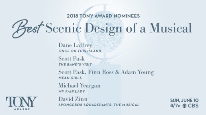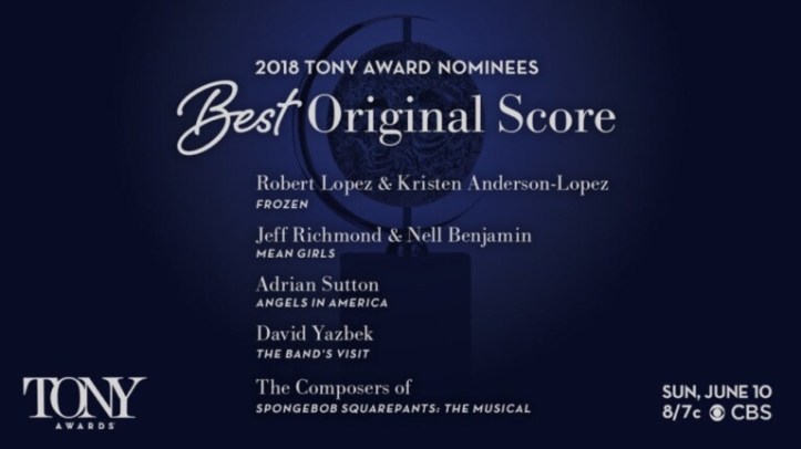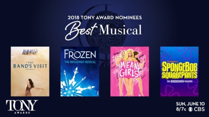 Nominations for the 2018 Tony Awards were announced May 1, with Mean Girls and SpongeBob SquarePants: The Musical coming out on top with 12 nods each including Best Musical. Joining the two titles in the category were The Band’s Visit (with 11 nominations) and Frozen (earning three nods).