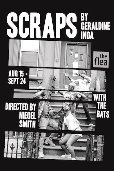 Buckle yourselves in, and prepare to to get a full forced beat down of the African-American experience in New York City. Hand cuffed to these troubled times, The Flea Theater’s Scraps is a strongly worded debate on the aftermath of a fatal Police shooting of an unarmed man, high school athlete with NFL potential, boyfriend, and father, all rolled up together into one infamous young black man. It’s a sharply drawn piece of writing by Beraldine Inoa (AMC’s ‘The Walking Dead‘), that engages quite purely and authentically with the issues of our times throwing ideas of fault around in a surprisingly pain-filled manner. It resonates, powerfully, particularly in the way it pivots around the #BlackLivesMatter movement; well, at least for the first half of this 100 minute one-act play. The second half is a whole different kind of play, knocking us off the actual steps of their home and turns it around on us. After a slow motion and disturbingly gagging decent into darkness, pummeled with fear, destruction, and violence, the timely play throws us quite abstractly into a complex gameshow of sorts, focusing on the sad and real curiosity of a fatherless 8-year-old black boy (Bryn Carter) who desperately wants some answers to his important questions.