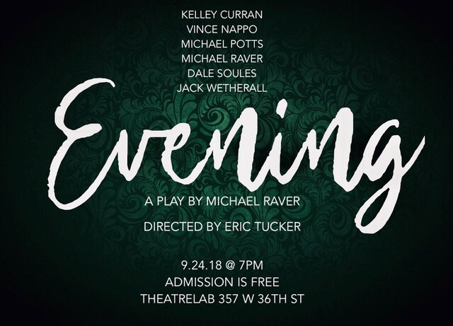 The reading of Evening will be presented at TheatreLab NYC on September 24th at 7pm. Admission is free. To reserve a seat, email eveningplayreservations@gmail.com. Seating is limited.