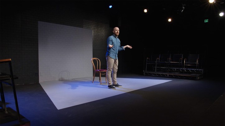 Filmed in the empty LA Pico Playhouse to rows and rows of nonreactive seats, Tom DeTrinis (Die, Mommie, Die!) gives us, in full display, his attention-seeking, “look at me” party-self. Demanding so much from us, he stands there and engages in a tongue-battle of epic proportions, and we can’t help but lean in. We know that side of humanity, as we see this side within ourselves. It’s that self that opens up his Making Friends one-man show, whether we like it or not. That persona is excited and a lot to take in, but we recognize it. It is that part that hides inside the proverbial favorite shirt, the one that we think makes us look good or handsome or sexy or skinny or tall or smart as humanly possible. But we also know its a guise. It covers up the self that lurks just underneath the fabric of society, and here, inside that opening bit of Making Friends with Tom, he tells us that he wants to fling that part aside. To take it off and showcase the anger that awaits underneath; that desires, most desperately, to jump forth from behind the laughter curtain of his outsized faggotry, and say “hello, hi“, for take two.