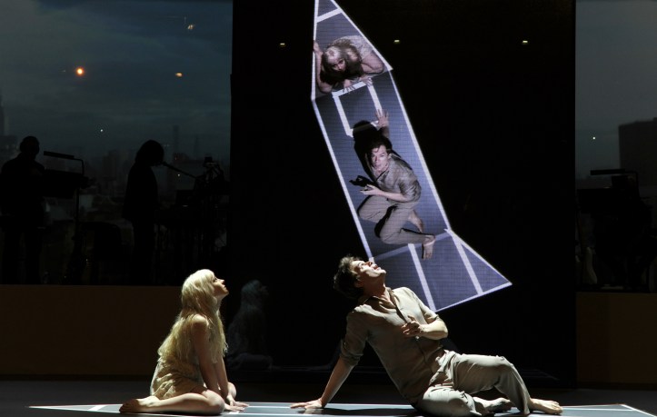 Thomas and the ‘Girl’ play inside the boundaries of a fantastically achieved attachment filled to the brim with hypnotic allusions and illusions, steeped in literary footnotes connected to Shakespeare’s Hamlet and beyond. The worlds are aligned, suggesting conflictual parallels with the Danish prince, that live and breath within. But if you truly desire to be pulled along by a driving narrative or sensical plot, you might want to stream elsewhere, as the abstractionisms are given the center stage and the spotlight completely. Only when Lennox sings heroically of her divided self or when Hall shines his vocal light into his character’s tortured soul do we find forgiveness and connection. Bowie’s songs and his untimely death add weight and wisdom to this study of pain and alienation, but can’t ultimately save itself or bring itself back to centeredness. We join solidly with the feeling, mainly because of Walsh’s wild ride through that dreamscape. But in reality, it is thanks to van Hove’s tense overwhelming staging, Yarden’s hypnotic imagery, and Brian Ronan’s dynamic sound, that we can fully embrace this original and trippy journey, propelling ourselves into the starry space of authenticity and abstractionism where we can float in its aura. It’s worth the ride, even when you don’t know where you are going.