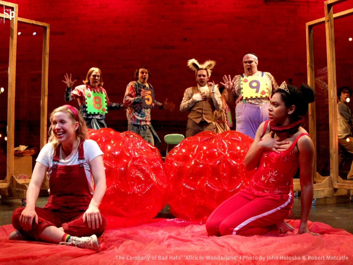 Tess Benger (center) in Bad Hats’ Alice in Wonderland. Photo by John Holosko and Robert Metcalfe.
