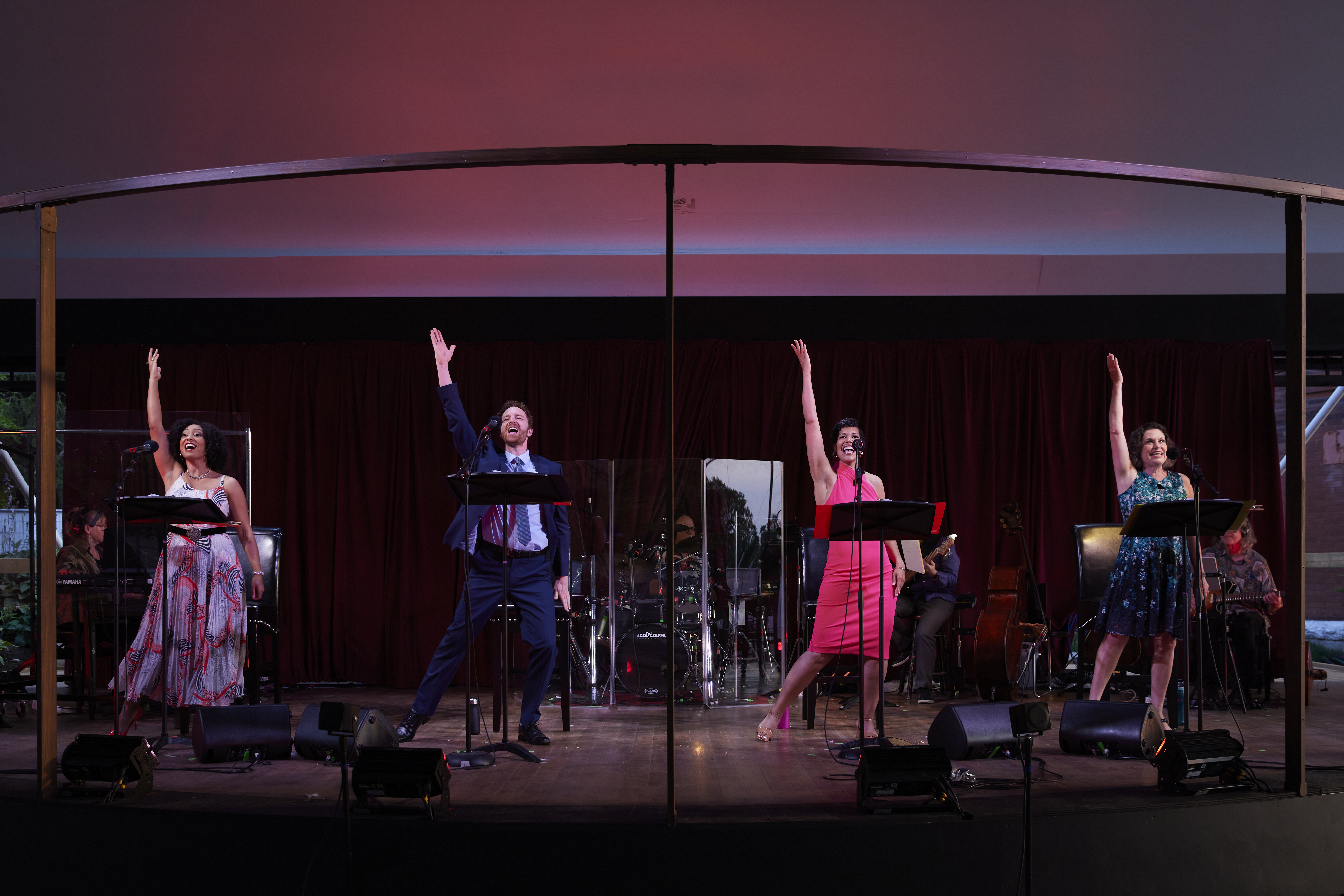 I wasn’t prepared for this. And I didn’t quite realize it until I sat down in those social distanced chairs under the Festival Theatre‘s outdoor tent. How could I not have realized? This was my first live performance in any sort of venue since early March 2020, since those pre-pandemic days when going to the theatre was as routine as going out for dinner or a drink. But on this particular beautiful Sunday afternoon in Stratford, Ontario, almost a year and a half later, I was sitting in a theatrical audience waiting for a show to begin. It’s a pretty astounding moment, that, oddly enough, I hadn’t really given time or energy to think about or have the concept sunk in, that is, until these four ultra-talented singers took to the stage and started to engage with us in the Stratford Festival’s Cabaret show entitled “You Can’t Stop the Beat.” You could have knocked me literally out of my seat with the power of that realization.