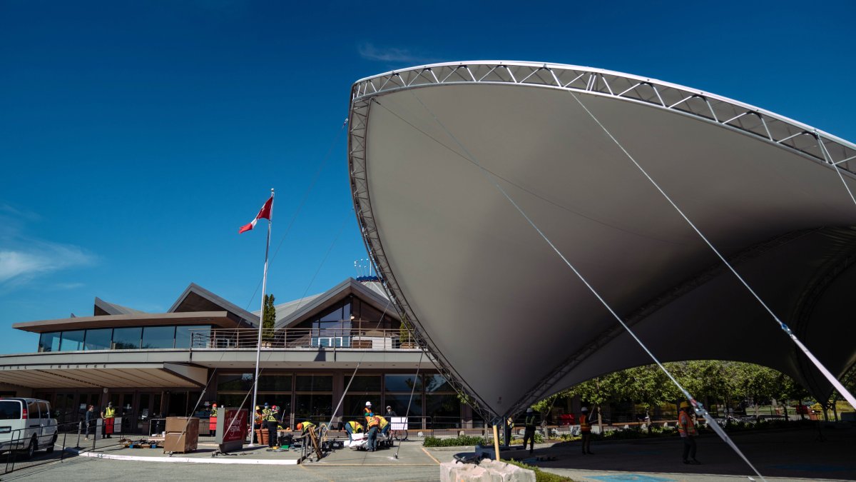 The canopy set up outside of the Stratford Festival’s main Festival Theatre. Courtesy Stratford Festival via Twitter.