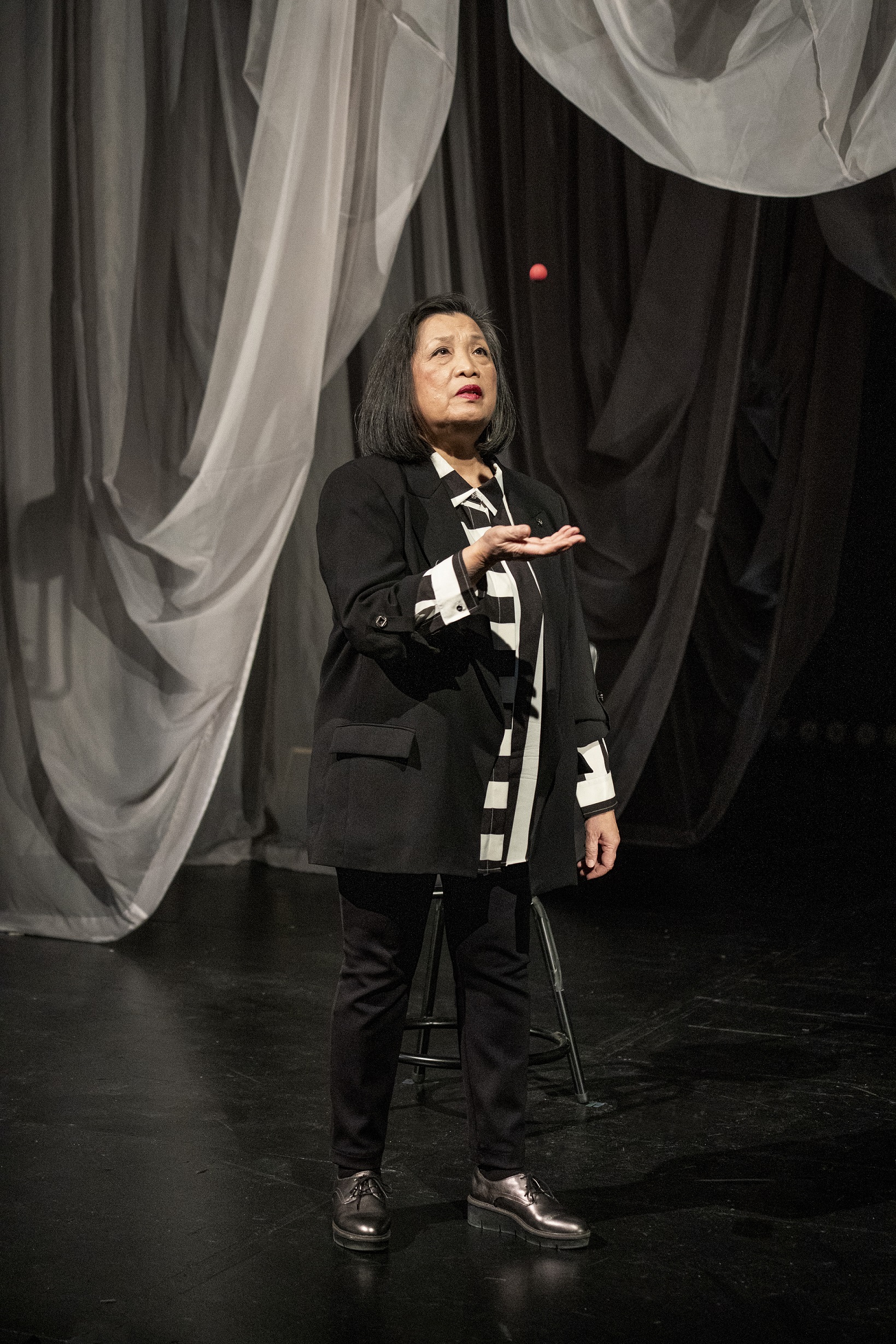 “No seams at all,” she tells us with pride in one very touching and wisely stitched moment that registers all that is magnificent and clear about this creation. One of the five personas that have a strong tale to tell inside The Public Theater‘s intimate engagement called Out of Time. And we are pulled in. Precisely and intimately, at least with the majority of the five new monologues delivered with clarity and a strong sensibility by five award-winning Asian American playwrights that have been brought together here. They are all calculated with clear intent to be performed by Asian American actors over the age of sixty, and as conceived and directed with a straight-forward distance by Les Waters (Broadway/Vineyard’s Dana H.), the commission, thanks to NAATCO, finds its real kick in the gut, at least for the majority of the two and half hours spent with this company of artists.