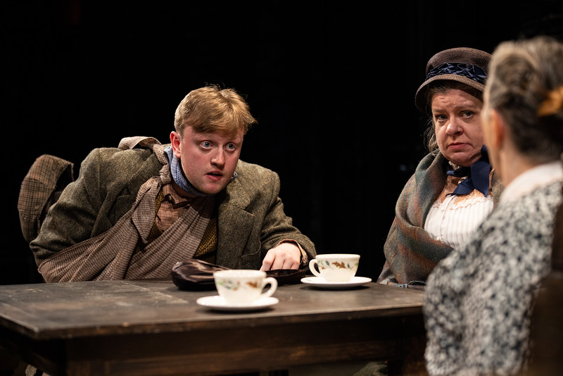 The actors find their space though, especially Amy Blackman (Tantrum’s Caroline, Or Change) as the daughter-in-law in question. She settles into a fantastic rhythm of strength and honor, even if I didn’t love the wrapping up that comes near the end. The clapping together of her impeccable portrayal of The Daughter-in-Law with Shipley’s formidable mother is heaven on a dirty stick, worthy of the whole adventure. It cracks with beautiful energy when they meet near the end of the play, finally giving us a reason for being interested and staying tuned in during the first unfocused beginnings. Ciaran Bowling (TFANA’s A Midsummer Night’s…) gives some impressive life to the role of the younger unmarried brother particularly when he clarifies his mother’s stronghold on him. “Nay mother—tha knows it’s right. Tha knows tha’s got me—an’ ’ll ha’e me till ter dies—an’ after that—yi!” It’s a shattering truth told beautifully, but only if you can understand the powerful stance he is taking with his mother.