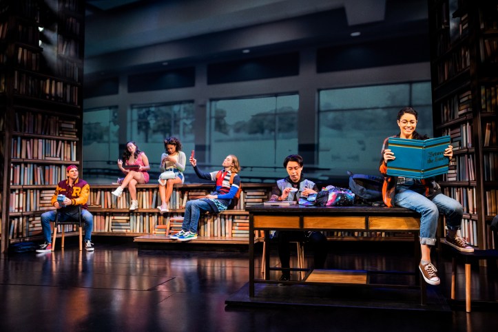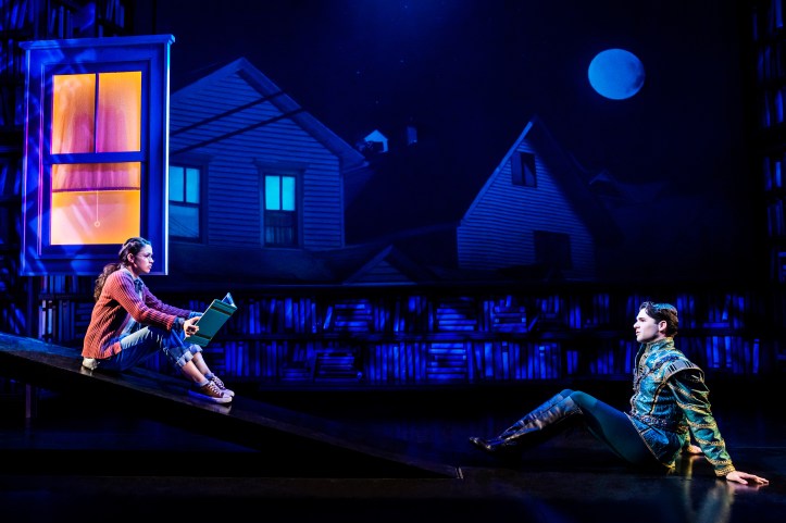 The idea is a fascinating one, unique and interesting. What lives and breathes Between the Lines, in a book, in a play, or in a musical? That’s the question to unpack when watching this new Off-Broadway musical based around a Young Adult book co-written by best-selling American author Jodi Picoult (“Wish You Were Here“) and her daughter, Samantha van Leer. And it’s all wrapped up so nicely in this new fanciful musical with music and lyrics by Elyssa Samsel and Kate Anderson (Disney’s “Olaf’s Frozen Adventure“) and a book by Timothy Allen McDonald (The Book Thief musical adaptation with Samsel, Anderson, & Picoult), where a young socially awkward 17-year-old girl by the name of Delilah, played beamingly by Arielle Jacobs (Broadway’s Aladdin) has her difficult life thrown up into the stars when a handsome prince in some very tight tights steps out from the pages of a fairy tale and professes undying love to her. As princes tend to do, I guess. Just go see the more mature (and more musically solid) version of fairy tales coming to life on Broadway in the phenomenal revival of Into the Woods.