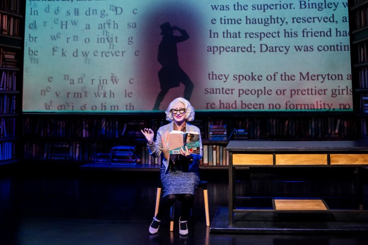 With all that bullying by the mob of four, Delilah turns her attention to a fairytale book she finds in the library, seemingly the only copy self-published by the author many years ago for her son’s enjoyment. Magically, when she opens the book, she comes face to face with the charming young Prince at the center of the tale, beautifully portrayed by the handsome Jake David Smith (Broadway’s Frozen), who is somewhat desperate to get out of his own story and into hers (that comment sounds far more sexual than any part of this very PG musical, trust me). The fictional life he is living inside of the lines, surrounded by his mother, Queen Maureen (Murney), her Lady in Waiting (Vicki Lewis), Prince Oliver’s should-be love interest, Princess Seraphima, perfectly portrayed by Hillary Fisher (TNG’s Cyrano), and a number of other odd-ball but fun creations, doesn’t seem to be fitting him as well as those tights – kudos to costume designer Gregg Barnes (Broadway’s Tuck Everlasting) who finds all the balances within; and he flies forward, dashingly and ridiculously, into the arms of Delilah hoping to discover some freedom and true love that doesn’t exist in his line by line story.