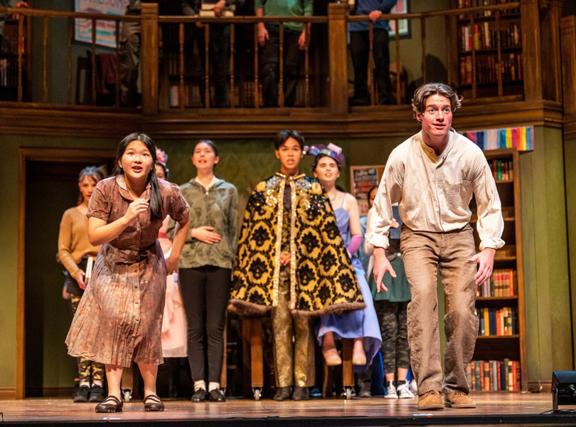 Brought to majestic life by a determined cast of dedicated and talented students, both on stage and in the equally important roles behind the scenes, such as stage management, props, wardrobe, scenic art, orchestra, donor relations, and entertainment marketing, this production of Into the Woods flies strong and high. It’s completely entertaining and worthy of the standing ovation it received when I saw it a few days ago thanks to director Saccha Dennis (Mirvish’s Come From Away) who finds a unique pathway and perspective in the reading room of a library, delivering a production that is both gleefully book-wormy, proud, and wonderfully wicked.
