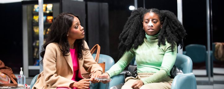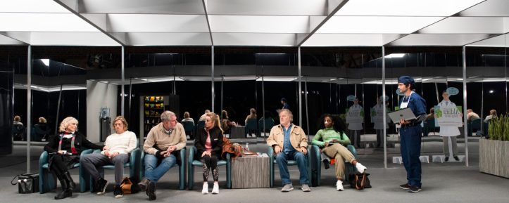 It’s clear that Gardner has set out to make us sit alongside these people as uncomfortably as they are in this moment of uncertainty where fear and hope get tied up with their attachments and support systems in knots that are so tight they can hurt or dislodge. It feels in a way that nothing much happens when compared to other more standardized plays around death and disease, but the current of these characters tells a different story with every shift in those uncomfortable seats. The cast is uniformly amazing, unearthing and winding up their emotional responses in ways that shine and astonish. The fear and mistrust of the medical establishment unfold radically, in both the insane, i.e. Paula’s holistic healing session with her singing bowls, and in the very real way that Beans’ Anna sister act helps the young Reggie stand up for herself. It’s not clear in any sense of the word what is the right thing for Reggie to do. We, as a society, are so used to just accepting the advice of a doctor, or believing outright that the doctor standing before us as we are given some traumatic news, knows what is best for us. But Gardner wants us to examine it all, particularly what happens in this kind of setting, much like her character Clyde does when he expresses skepticism of an outcome that doesn’t really make sense. That tension states it all.