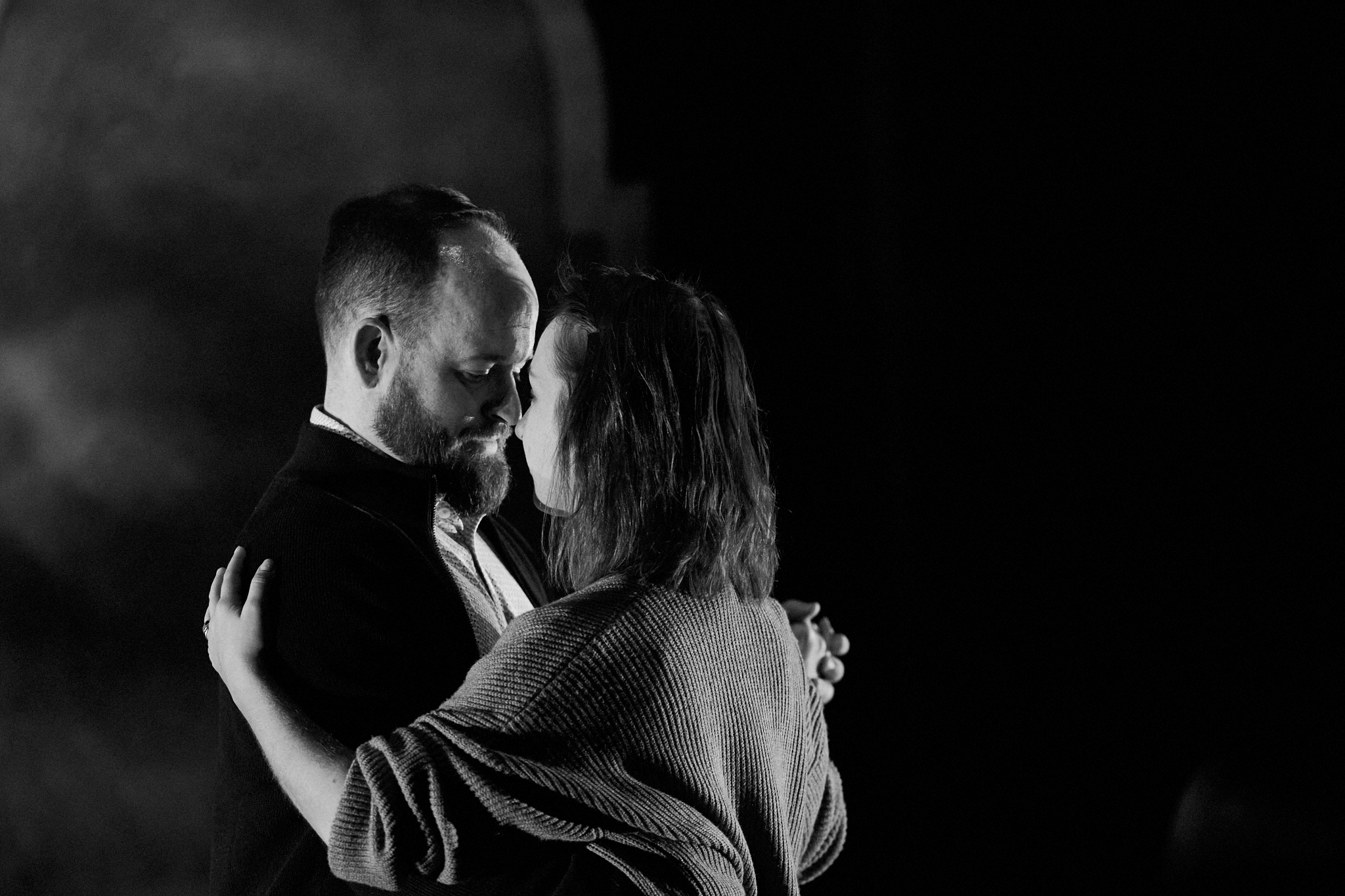 During the height of the lockdown in 2021, an initial version of this piece was presented as a radio play at Factory Theatre, written by MacKenzie and directed by Nina Lee Aquino. This March, First Métis Man of Odesa, as directed by Lianna Makuch (Pyretic Productions/Punctuate!’s Barvinok), makes its stage debut, offering a compelling continuation of the initial story told in that first radio play. The couple, Matthew MacKenzie and his wife, Mariya Khomutova, sat down with Frontmezzjunkies and thankfully answered a few questions about their incredible journey from that first love-struck connection to its World Premiere at The Theatre Centre in Toronto.
