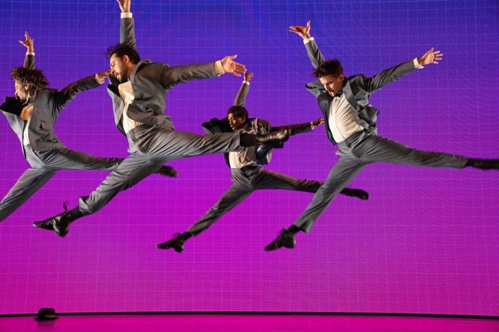 Left to right/ Peter John Chursin, Manuel Herrera, Yeman Brown, Jacob Guzman in Bob Fosse’s DANCIN’ at The Music Box Theatre. Photo by Julieta Cervantes