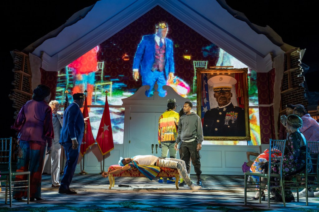 A quartet of mourners harmonizes gloriously, singing about a time to break down and a time to build. It’s a telling reformation, signaling that we are not in 16th-Century Denmark anymore, but somewhere down in Southern Georgia. The shift feels right. No surprise here as we watch director Kenny Leon (Broadway’s Topdog/Underdog), after his revelatory Much Ado About Nothing, also at the Public’s Delacorte, sink his vantage point into a re-angled “murder most foul” with a strong, confident strut, embodied most beautifully by his intense Hamlet, Ato Blankson-Wood (Broadway’s Slave Play), and the revealing entrance of the well-cast Warner Miller (Broadway’s The Piano Lesson) as his Horatio.