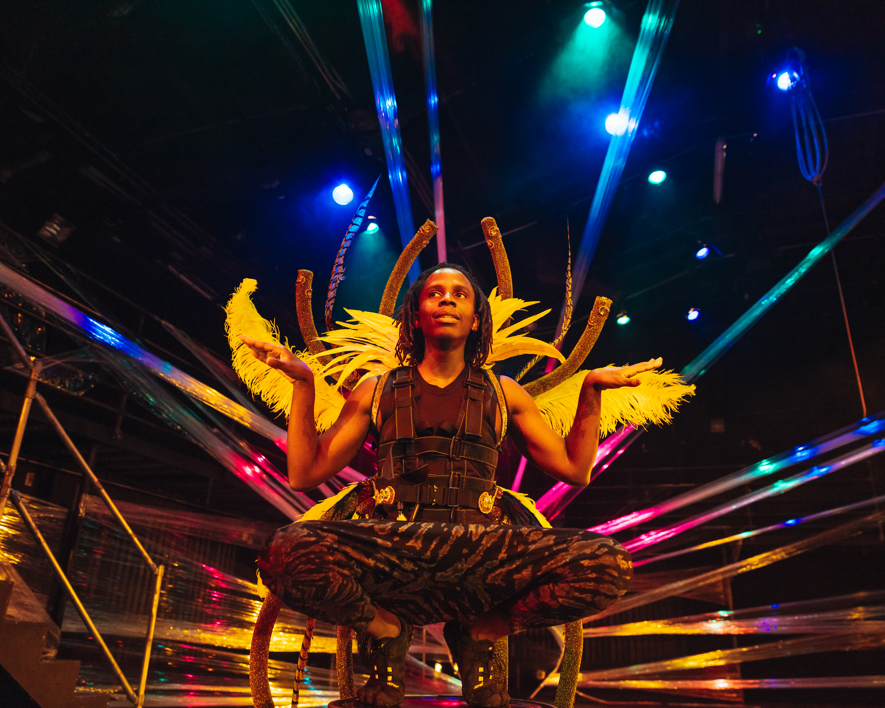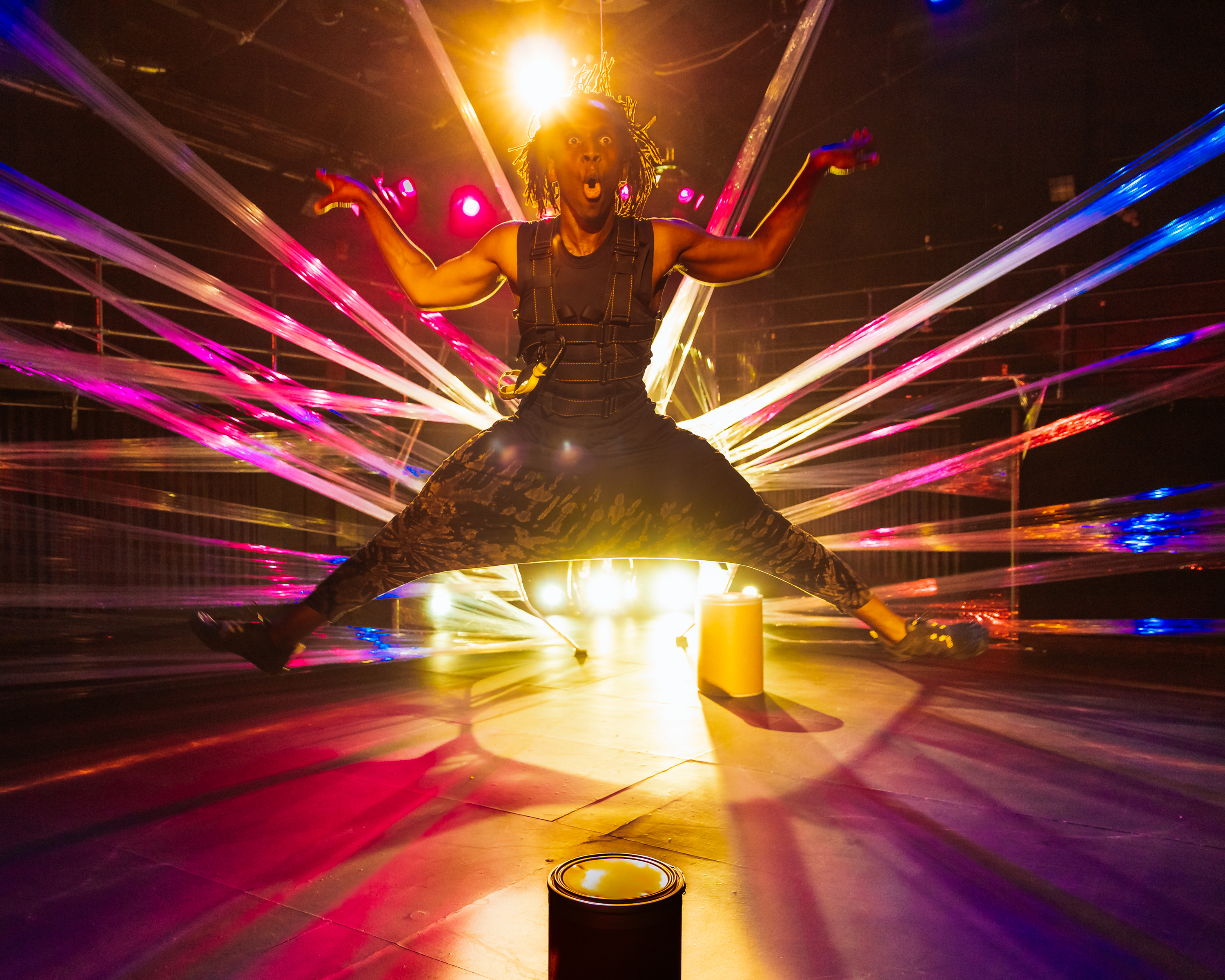 Yet, it is a compelling web that is woven, ultimately feeling important and personal throughout the intersectionalities of identity and culture, playing with the deep multidiscipline unpacking of complicated self-discovery drawn from his familial Jamaican roots and the complexities of gender, sexuality, and class that creep out of the “Yard“. The performance is vivid and vital, frenetic and feisty, combining aerial light-footedness with dance, poetry, and all that lies in between. It attempts with a true heart and unending energy to captivate, and Ellis, as the determined Ginnal, manages, maybe not at first, but eventually, to take us in and snag us, as the web he weaves gets more grounded in the complications of survival alongside familial expectations.