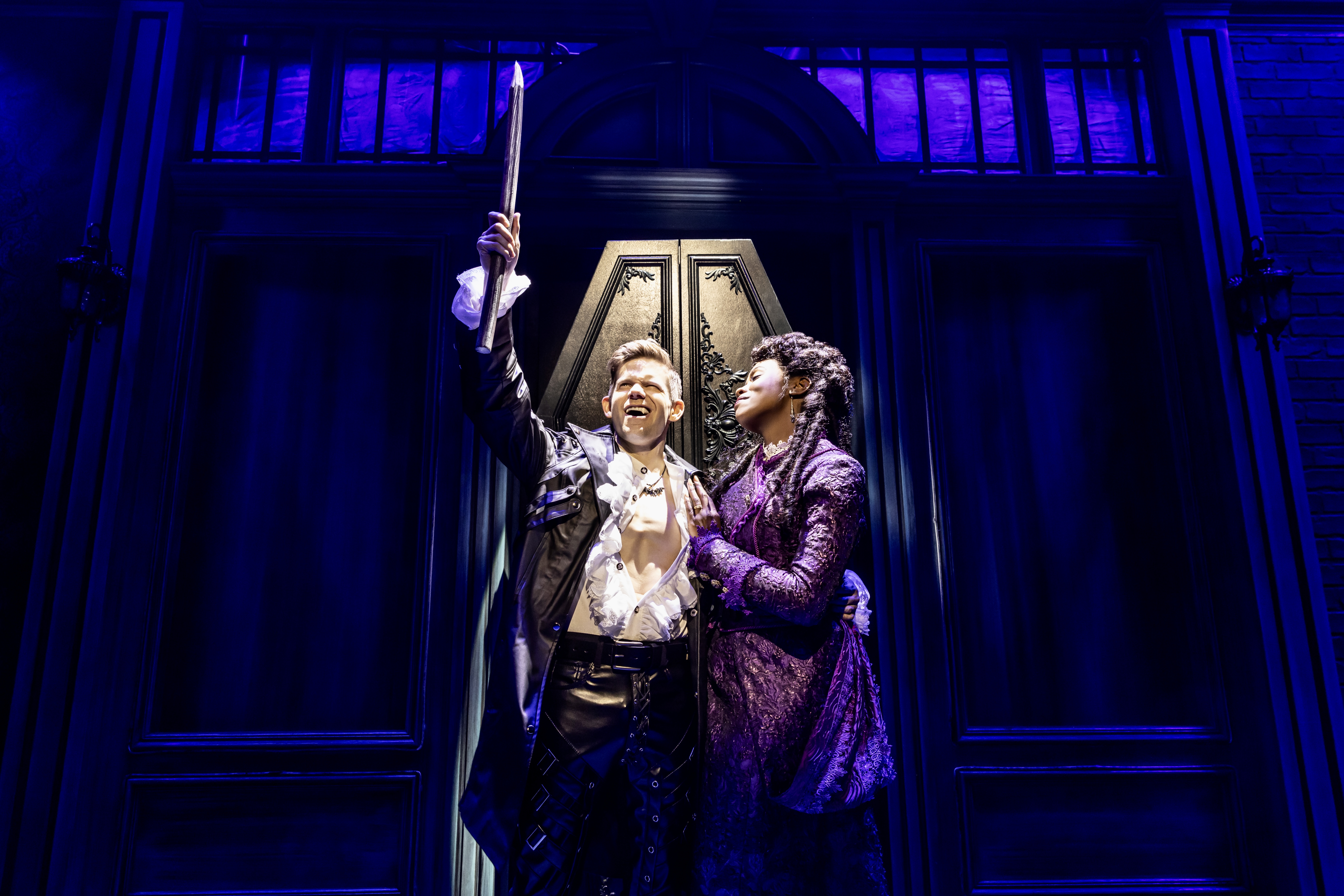 Thanks to the solid fun work by scenic and puppetry designer Tijana Bjelajac (La MaMa’s Living in the Exile), with delightfully ingenious costuming by Tristan Raines (Muny’s Guys and Dolls), a perfect lighting design by Rob Denton (Muny’s Chess), and some delectable original music and sound design by Victoria Deiorio (St. Clement’s A Christmas Carol), Dracula – A Comedy of Terrors delivers on its promise, finding the funny vein every opportunity given. Burton, as the uglier sister to Boatman’s wonderfully sharp Lucy, is a profoundly great hoot, giving so much more than we initially think is possible from such a characterization. It’s never-ending in its strangely emotional but ridiculously funny embodiment. Harvey marvels at every turn of a wig, swinging herself around as if her life depended on it. And Keenan-Bolger excels, surprising us all with his sexy solicitor stance once bitten, after playing it so well straight-laced and naive. I only, selfishly, wish both he and Daly gave us a bit more eroticism in their alliance…and maybe a bit more shirtlessness.