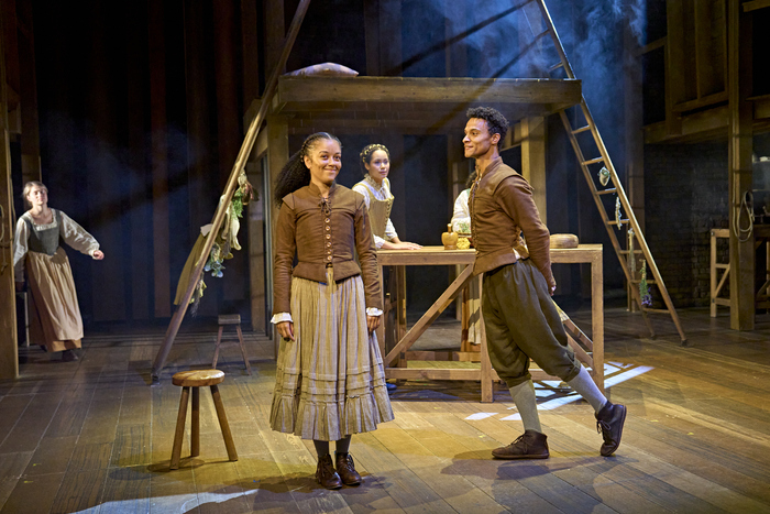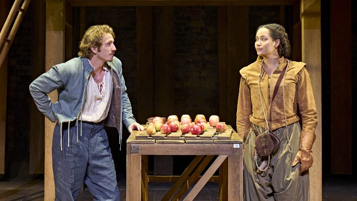“We’ve only ever been taught one narrative about her,” she explains, when thinking about Shakespeare’s wife, a woman referred to as Anne Hathaway, but, at least in the eyes and will of her father, Richard, her name, as written, was Agnes. “With a silent g”, she, as portrayed most determinately by a very strong Madeleine Mantock (West End’s Blithe Spirit), boldly states, kindly asking this of the young Latin tutor by the name of Will that stands before her, portrayed adeptly by the handsome Tom Varey (Trafalgar Studios’ A Taste of Honey). Their electricity is palpable.