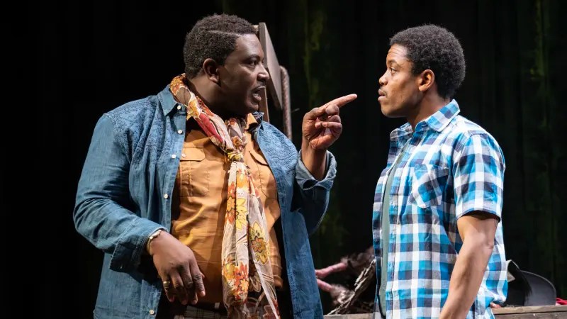 The second part of this American “family play” takes us one step back, with a very alive young Walking Man (Hill) out back of that very same house of the now much younger Early, one that we are told with deliberation was built by Early’s husband, Crazy Eddie, tenderly well played by Daniel J. Watts (Broadway’s Tina). Some of the framework of this family, this house, and their union has been built and laid out in the first act, but now we are given a view through the trees and a different vantage point of Mother Early. She’s as feisty as ever, spiking at her son with “Do you think you just made a point? Smiling like you think you did?“. It’s a clever motherly jab that is felt strong and true by the young and sensual Walking Man. He is the ultimate wanderer, getting lost wherever he goes, looking for answers to questions that aren’t that clear even to him. As played by the compelling Hill, this wandering Walking Man is as alive as one could be, but complicated on the inside. “Sounds to me like you’ve been a few places,” he is told by his flamboyant but adoring (and adorable) Uncle Dax, played true and fabulous by Lance Coadie Williams (Public/Broadway’s Sweat), “but you got to learn to pay attention to what you see.”