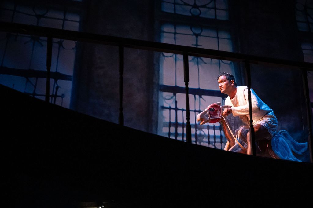 “Get me to the luck,” he cries out as he rides hard on that wooden rocking horse at the center of this captivating opera trying to harness love and attachment from a dysfunctional non-maternal narcissist. It’s a captivating visual, with this ride to ruin playing a small number of vocally stellar performances at the Crow’s Theatre main stage. The emotional need and desperation are present, almost from the get-go inside Tapestry Opera‘s new production of Rocking Horse Winner, and even for us who aren’t that accustomed to opera, the gallop is invigorating. Reuniting much of the original cast and creative members for our enjoyment, the opera begins with four souls, referred to as “The House” (solidly performed by Midori Marsh, Alex Hetherington, Anika Venkatesh, and Korin Thomas-Smith), singing out a simple childlike refrain while dancing like toy soldier marionettes upstairs above the fray. It signals a whispering and haunting element that, as directed with care by Michael Hidetoshi Mori (Sacramento Opera’s Rigoletto), majestically brings forth the perils and dangers of all that is wrong in the house of Paul. Beautifully portrayed by tenor Asitha Tennekoon (Loose Tea Music Theatre’s Angel’s Bone), the central young figure draws us into his depth and despair, roping us in and whose fragility powers all that is dangerous within.