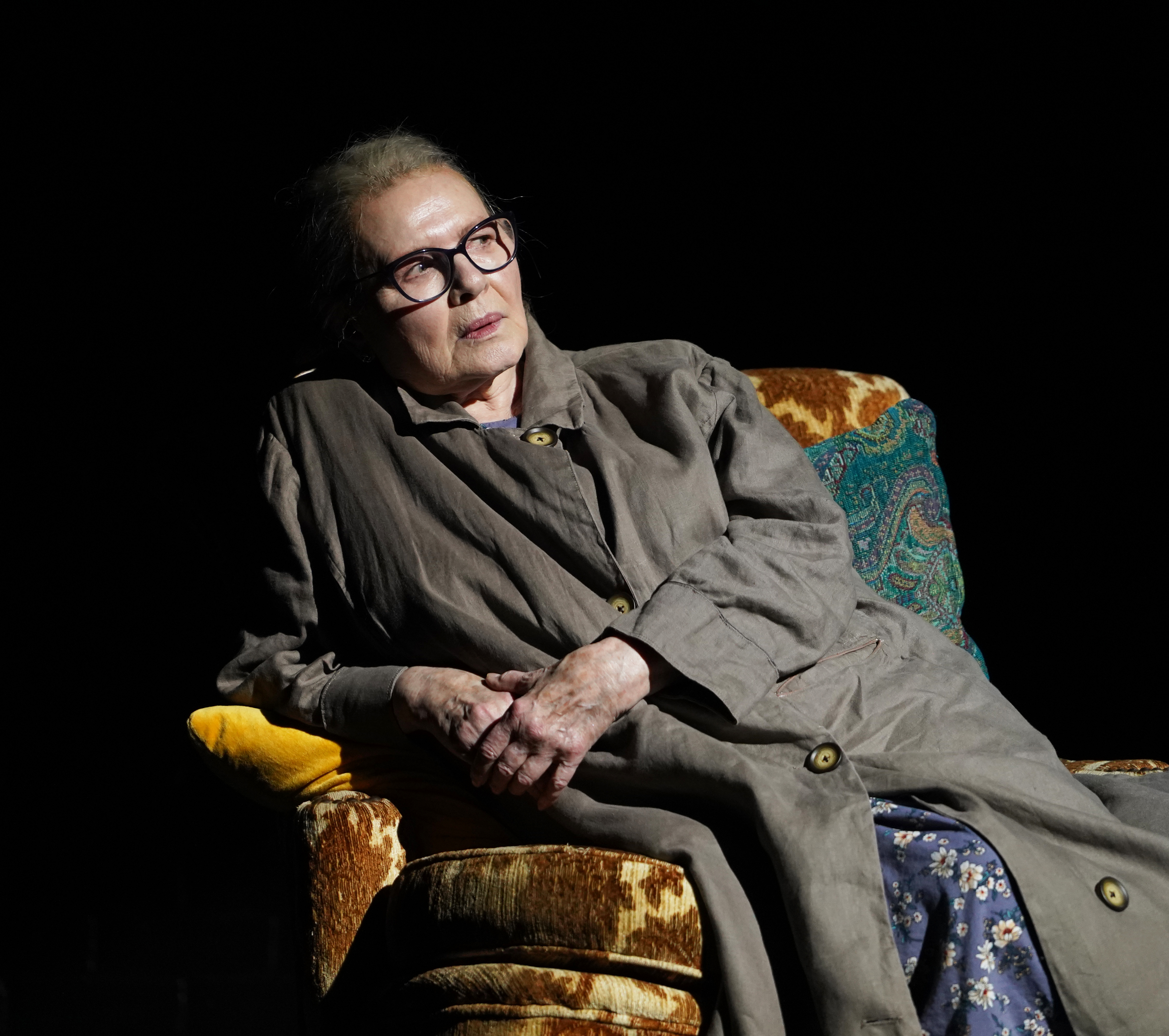 Scene Partners doesn’t play easy with our unpacking, leading us down blind endless alleyways decorated with an abundance of movie imagery that either leads us to brick walls or bottomless pits to fall into. Wiest’s Meryl has necessarily immersed herself in these vintage cinematic panoramas, probably to unconsciously avoid the abusive reality she found herself trapped in, and in that trauma response, Wiest has found the perfect embodiment for Mrs. Kowalski, bringing feisty and forceful complexities to the forefront as she shuffles and stabs herself into frame. And even if it doesn’t, in the end, add up to much, this Vineyard Theatre production is flavorful in its twisted construction and projections. The “Doctor Zhivago” impressions and pop-culture references overwhelm, not just our heroine, but also our connections to emotional clarity and authenticity, leaving us hanging halfway down and in between floors waiting for something to fully make an impact.