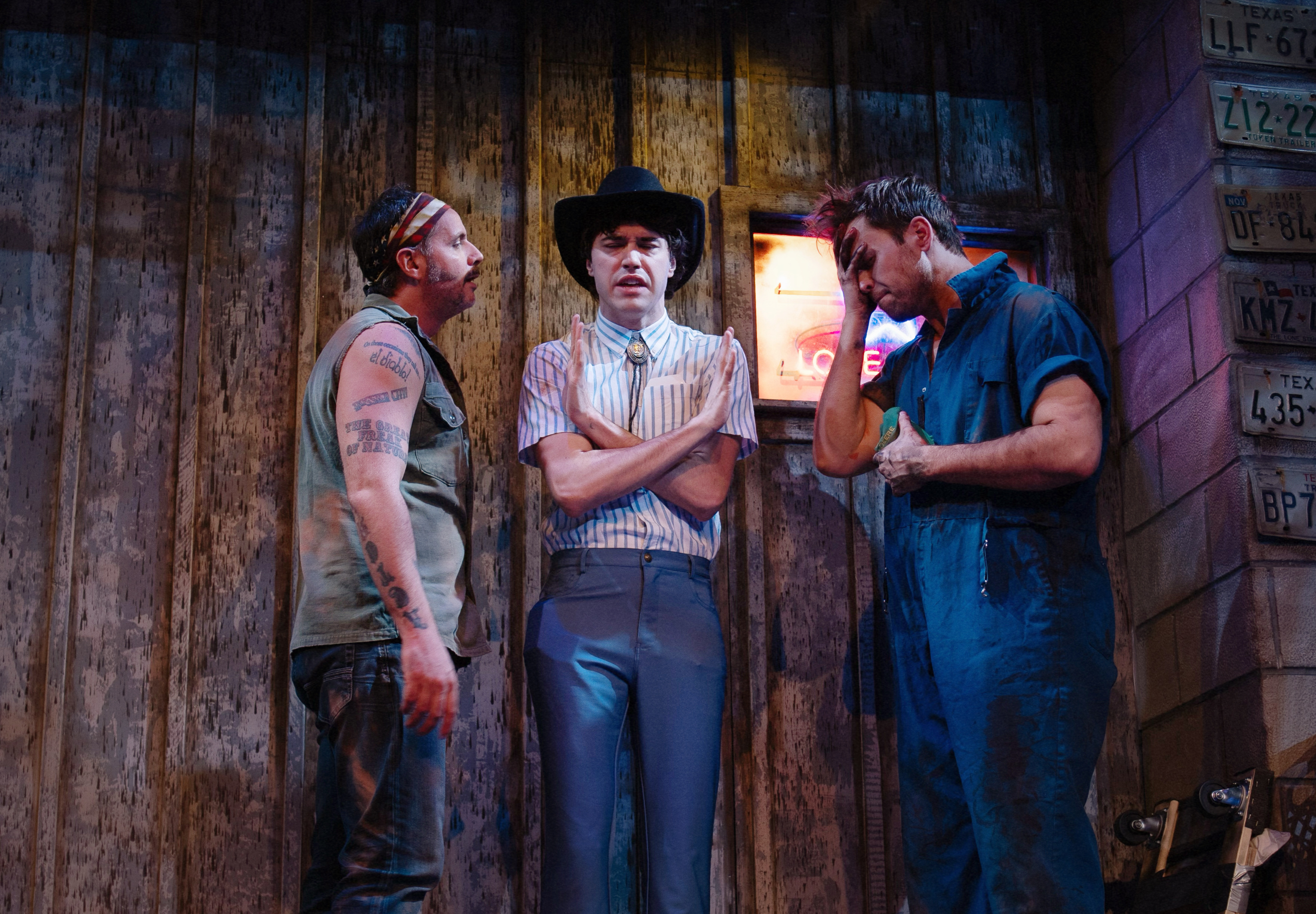 Finally, there is some tension: Ray’s high school friend, Cletis, who Roy hates with a passion arrives. He’s the antithesis of Ray and Roy, and as played by Ryan McCartan (Roundabout’s Scotland, PA), Cletis is exactly what you might expect. He’s the perfect nerd with high-water pants, a buttoned-up shirt, loafers, and, of course, a pocket protector filled with pens. He comes in with what should be catastrophic news for Roy, but Ray has his own bombshell to toss into the mix. You would expect fireworks, especially from a veteran who is suffering from PTSD, but what you actually end up getting is ‘good old Roy’ who puts his arm around his brother’s shoulders and heads on home. You get quiet defeat. But, who knows how long that will last.