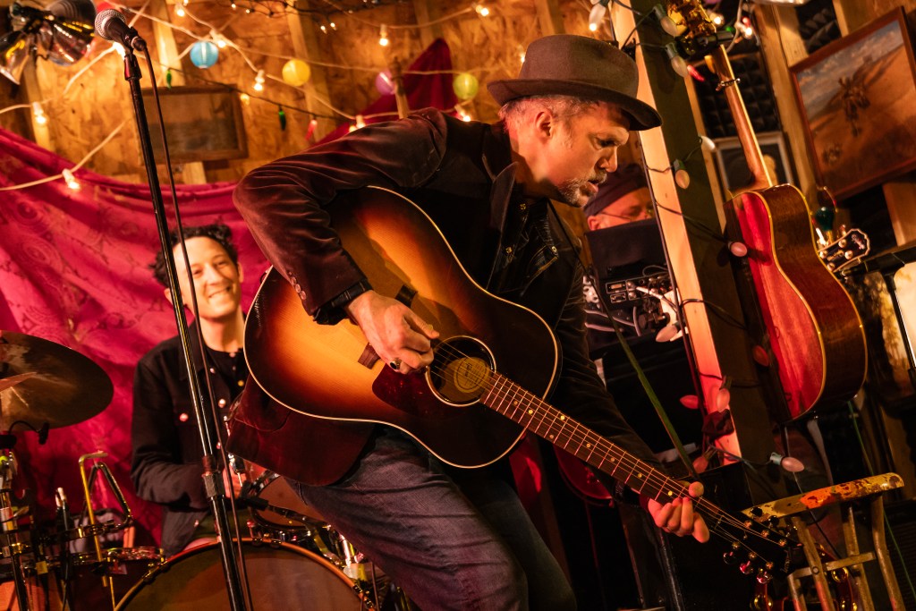 All of this starry night sonata unfolds most lovingly before the new musical, Dead Outlaw, presented strong at the Minetta Lane Theatre by Audible, gallops full force with a rocking train robbery energy. As directed with clarity and conviction by David Cromer (Broadway’s The Sound Inside; MTC’s Prayer for the French Republic), the playful piece pounds with a powerful (heart) beat, majestically taking this magical and fanciful show to a higher plane than one could have expected by that first sweet natured melody. It quickly shifts and stomps forth its tender singing and guitar-playing gears into something far more driving, rocking, guitar-playing, and complex. And we all quite happily join that galloping horse, as we get sucked into that deliciously diabolical rattlesnake tornado with the wildest abandonment one could imagine.