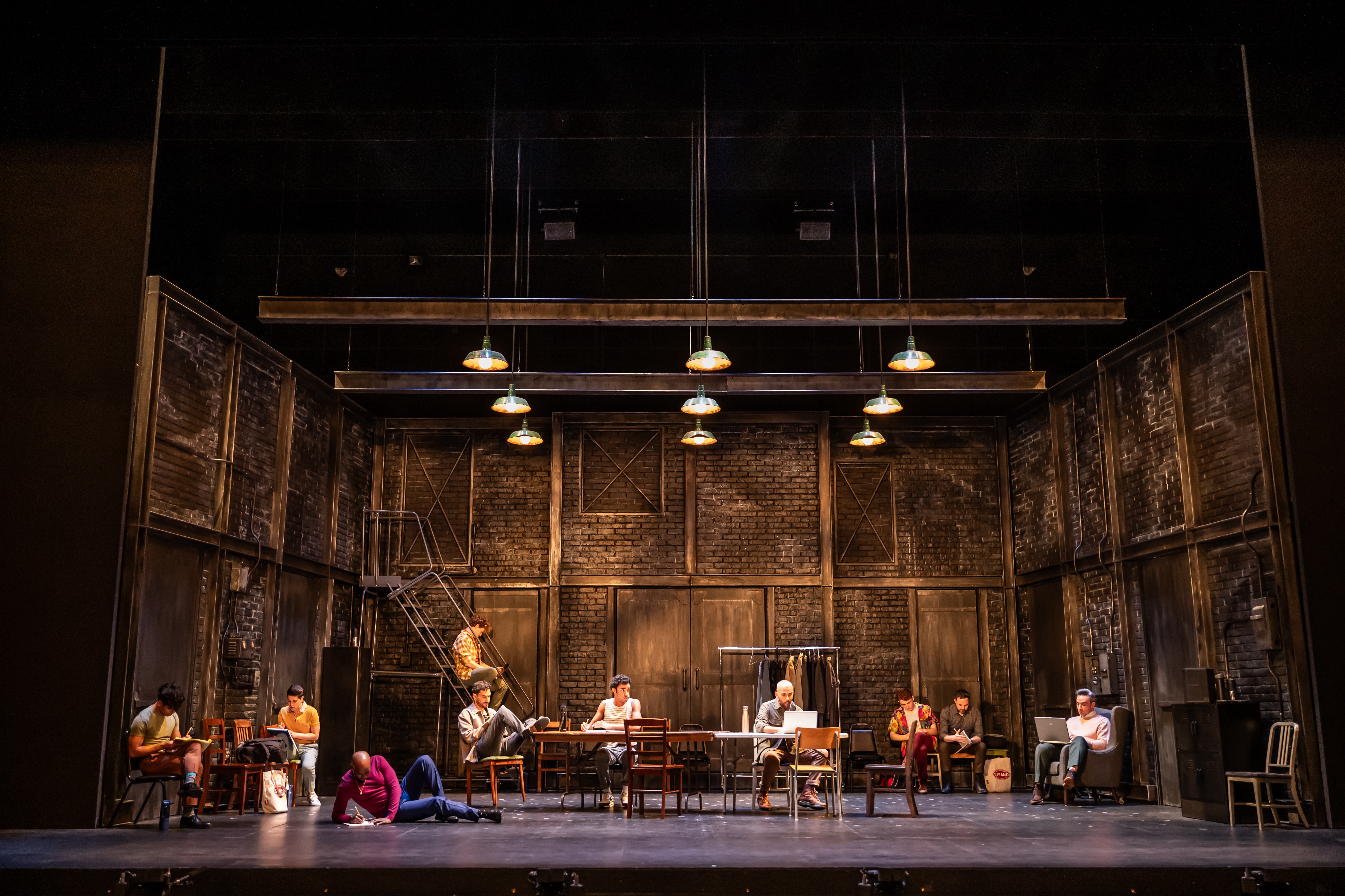 L-R: Aldrin Bundoc, Breton Lalama, Hollywood Jade, Ben Page, Antoine Yared, Stephen Jackman-Torkoff, Qasim Khan, Landon Nesbitt, Gregory Prest, and Salvatore Antonio in Canadian Stage’s production of Matthew López’s The Inheritance. Photo by Dahlia Katz.