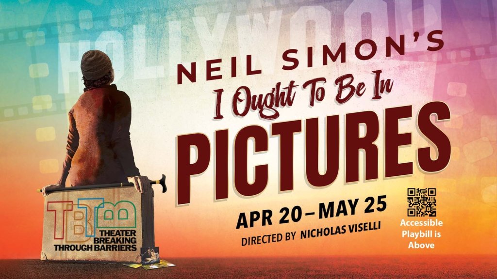 Theater Breaking Through Barriers (TBTB) production of I Ought to Be in Pictures is a funny and touching comedy, hitting all the right notes with a cast that fits together seamlessly. What we have here is vintage Neil Simon giving us his classic verbal sparing that has the audience continually holding their breath waiting for the next one to zing in. TBTB is “dedicated to advancing and celebrating the work of professional artists with disabilities.” The performance included an audio description of the set and characters before the performance began and script text during the play.