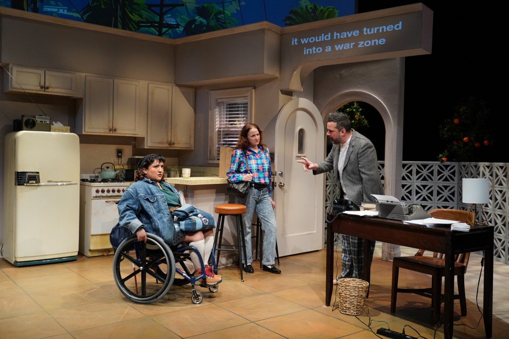 Thorn seems to embody Herb, the talented and once successful writer, mired in the lonely world of self-doubt who can’t trust his craft, his ideas, or his ability to keep pushing in the competitive “younger” world of the entertainment business. His anger has turned to resignation as his confidence has faded. Thorn can join in the quick and cutting war of words in the Simon script and still carry that heavy weight of failure that’s dragging him down. As Libby, Gomez is like a haboob that has swirled into Herb’s life. Her rapid-fire delivery gives the daughter the edge keeping anyone from reeling her in or rearranging her plan.