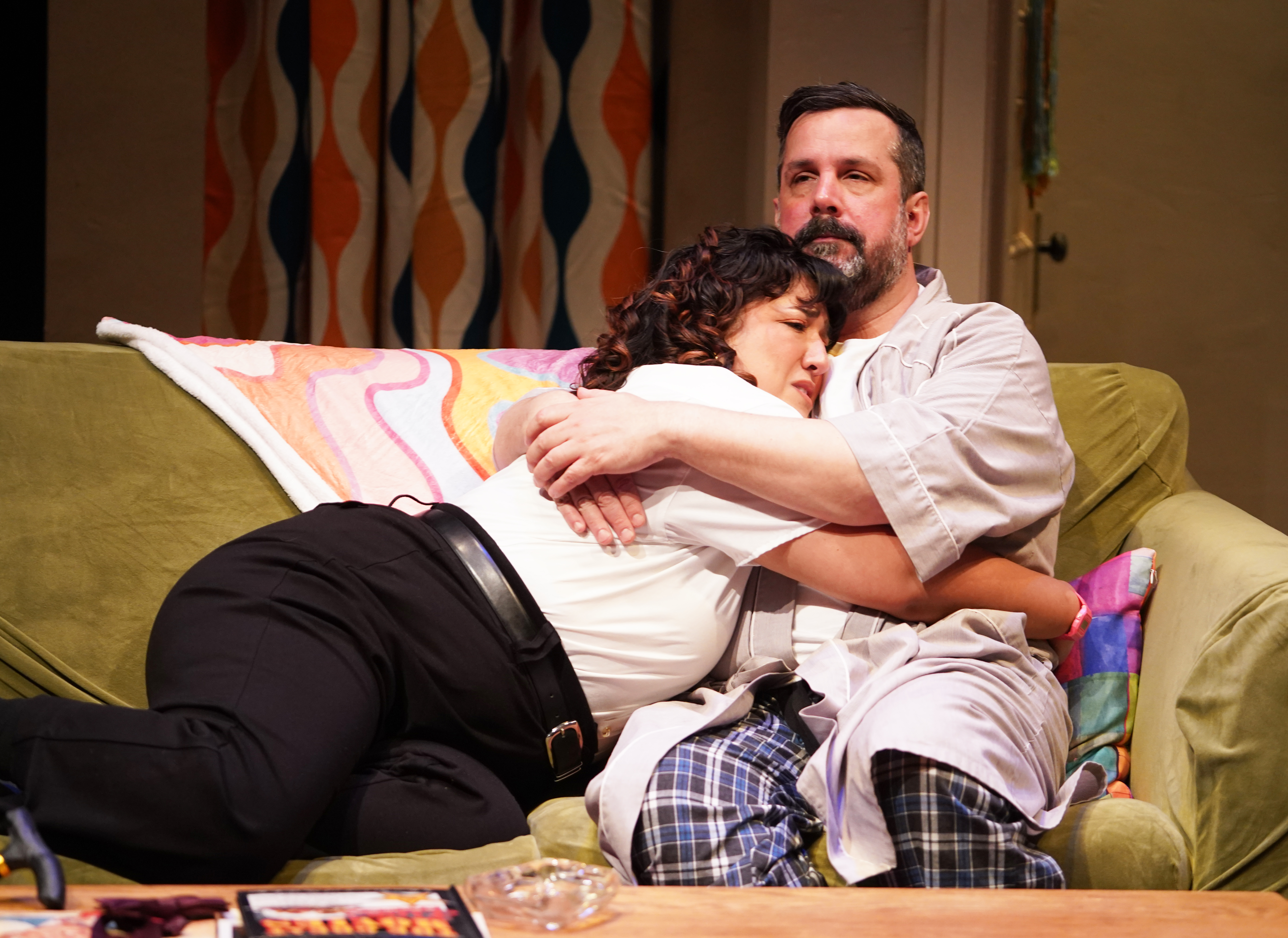 Directed by Nicholas Vitelli (TBTB’s God of Carnage) I Ought to Be in Pictures has a real feel for its characters and their environment, moving them around the drab living space of the dad’s small West Hollywood apartment in the late 1970s. Scenic and lighting designer Bert Scott (TBTB’s Brecht on Brecht) gives the tired apartment touches that show how Herb sees himself, tumbling on the way down; old appliances, and smudges around cabinet pulls and light switches emphasize the decline.