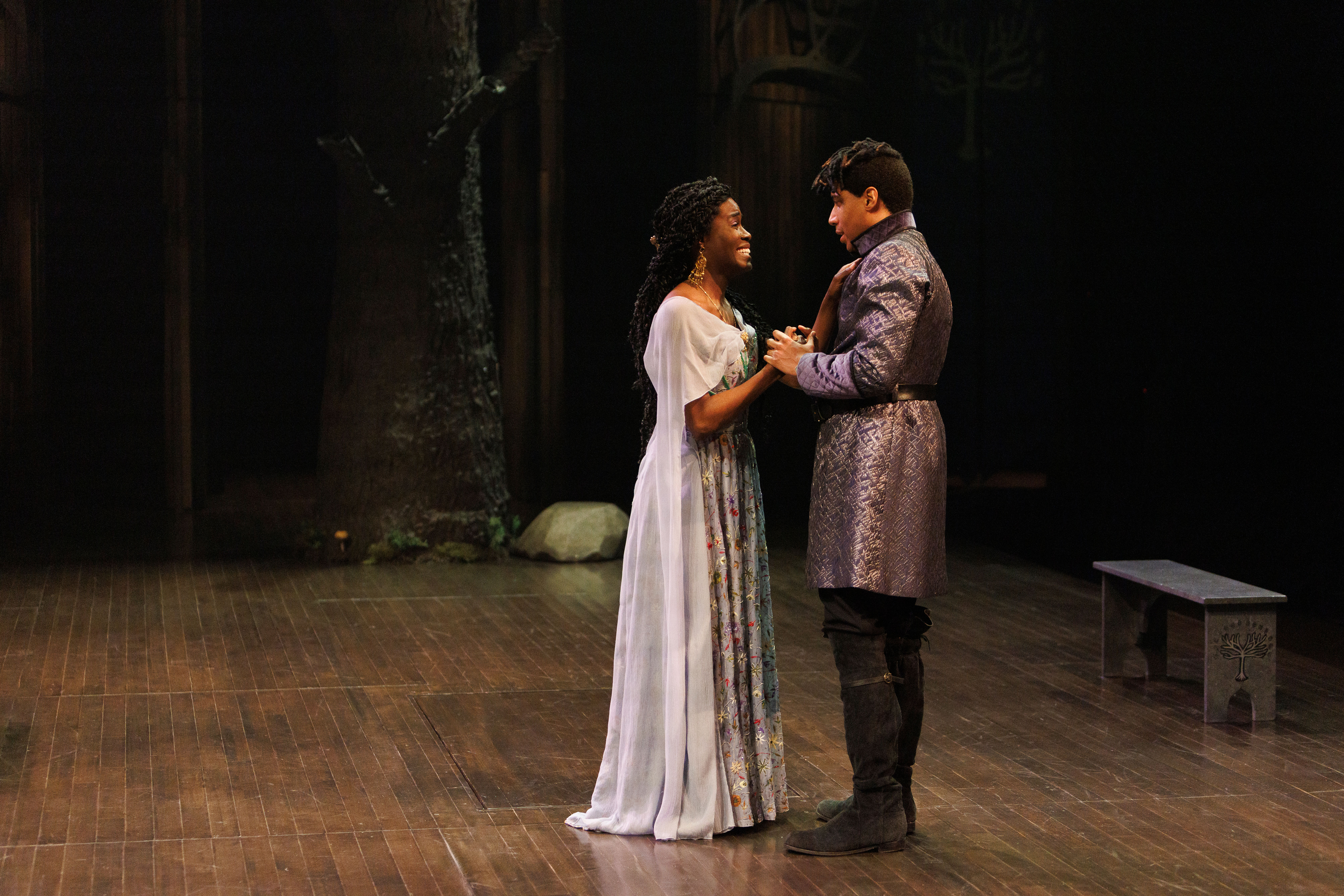 Allison Edwards-Crewe as Innogen and Jordin Hall as Posthumus Leonatus in Cymbeline. Stratford Festival 2024. Photo: David Hou.
