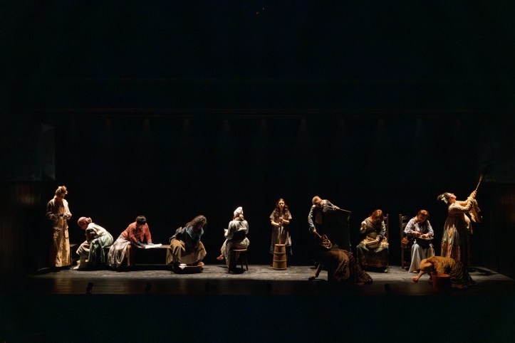 It’s a fascinating exchange that takes place in that second scene, between the married Mr. sent to fetch Elizabeth Luke, who, like the somewhat deranged Sally and many of the other women in The Welkin, speaks about the annoying interruption of her tedious housework as cruel, even though it is also described as boring and difficult, yet required. But Elizabeth allows herself to be swung into service, joining a powerful parade of women, played with majestic purpose by a crew of fantastically detailed actors, engaged in playing their part in the same quorum, even though they weren’t, as pointed out by Elizabeth, brought forth to help the woman during her speedy trial. “I know she has been tried in a cold room by cold men on the word of a cold husband, with no one to speak for her and a mob outside the window.” And it’s clear this play and this woman will have much to say about this unjust framework.
