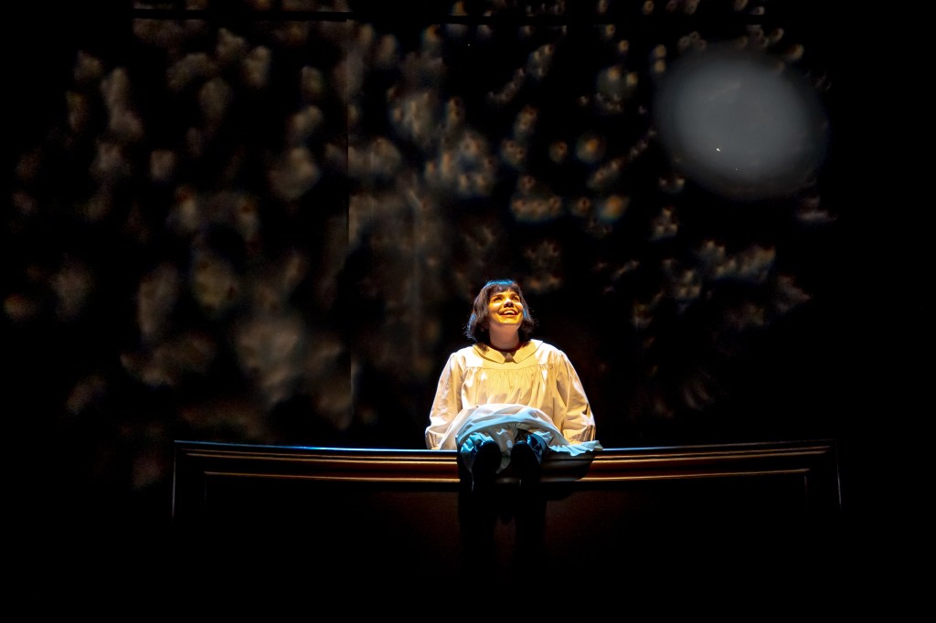 “You have to forget all that nonsense,” these children are told with authoritarian force when memories of their past lives sneak into the conversation in front of the two adult characters who represent the school and the systems that have brought them there. Father Williams, the school’s anxious priest, played cleverly by Nathan Howe (Crow’s Red Velvet), and the complex creation that is the equally ‘neutered’ Welsh teacher, Ms. Ap Dafydd, played with a cool relevance by Catherine Fitch (Factory’s Prairie Nurse), do their prescribed job, trying to teach the children language and Christian morals, while eradicating the memories of their cultured past so that they may find “hope in the white man’s world“. But it’s inside the personal framing with the Indigenous students, away from these two, where we find the play’s quiet power.