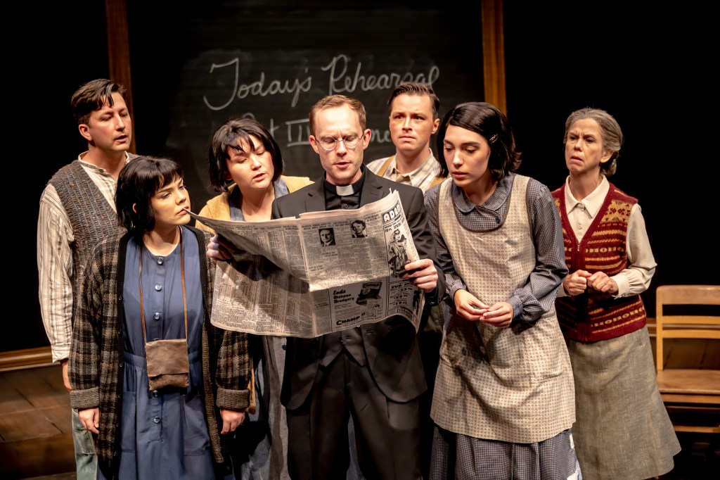 This is the second play in the last week where we are given a date in the 1930s to use as a guidepost for the exploration of extreme racism and intolerance. Fun, right? And although I found Arlekin Players Theatre’s Our Class at Classic Stage Company emotional and completely relevant, staged with creativity, and presented at a time when the world is facing an increase in antisemitism across the globe, there is something far more emotionally detailed and magnificent that lies inside the casual dialogue delivered by the characters in Canadian Stage‘s production of 1939. This beautifully written portrait of a fictional residential school that finds itself grappling with the outcomes of forced assimilation of the Indigenous population in Northern Ontario is as deeply emotional and darkly entertaining as a play can be, while also unpacking a heartbreaking undercurrent that sits heavy in my card-carrying Indigenous heart. And it’s also a comedy, of sorts; smart, sharp, and wildly engaging.