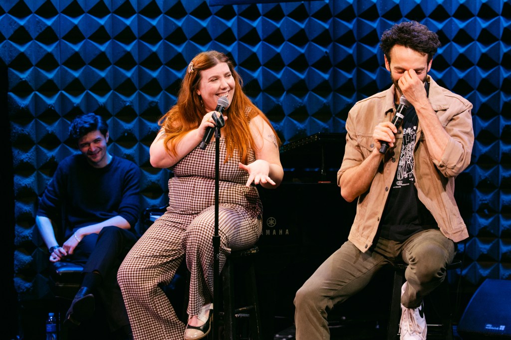 Comedian Gianmarco Soresi (59E59 Theaters’ Less Than 50%), getting super theatrically specific here in this NYC installment of Theater Adult delivers the goods without pause. He’s sharply funny and on it, engaging with the audience and their hopes and dreams, and their failures. As stated in the press release, his “attendees will be in for an evening that blends the joy, drama, and nostalgia of theater with the wit and humor of Gianmarco Soresi.” Not knowing what that would look like, I was jolted awake by his mad sharp comedic mind, instantly engaging his and our deep love for the world of musical theatre.