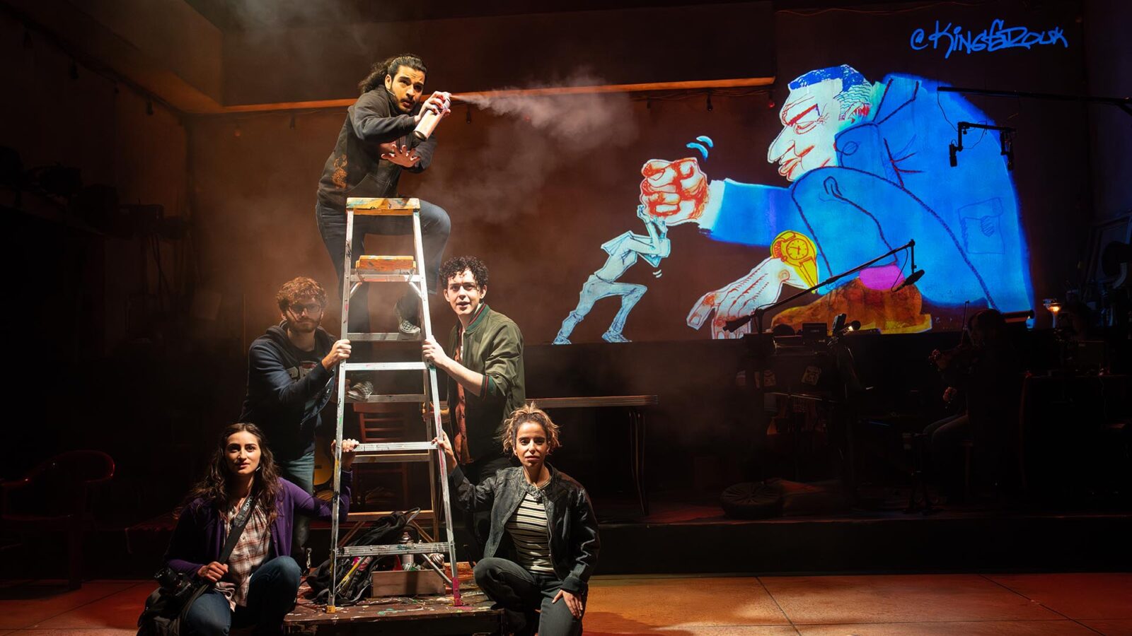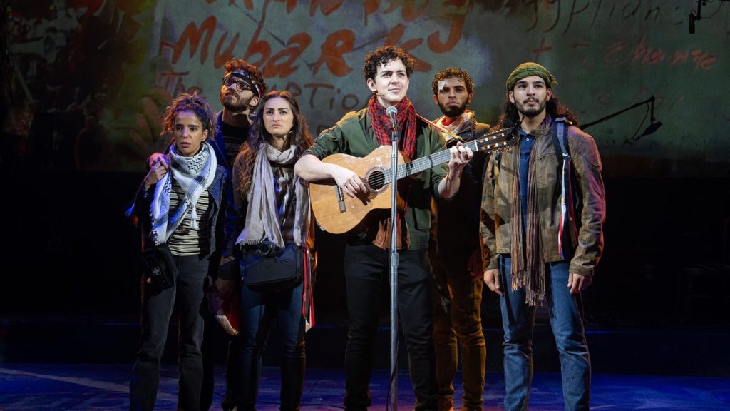 It’s a compelling tale of passionate artists trying to take control of the world that they live in, or at least playing a role in revolutionary change, becoming actively involved and inspired, but also frustrated and disillusioned when death, military crackdowns, and political upheaval take on different dangerous tones. Amir is the romantic thinker of the group, believing that a melody is what they hear first. Lyrics come next, but if the melody is good, it can become something powerful. We can totally understand Layla’s growing fascination and feelings for this man, as they harmonize about freedom and discuss change. Widen the aperture, Layla says, is the way to change the focus of a photograph; a symbolic reframing that is most meaningful as we dive into the history as spelled out in an informative insert. It’s compelling stuff, and the songs find their focus, delivering an entryway into the emotional spaces needed. It also doesn’t hurt that all are very accomplished singers, giving us performances that move and engage, thanks in part to the beautiful orchestrations by Daniel Lazour & Michael Starobin (Broadway’s Suffs).
