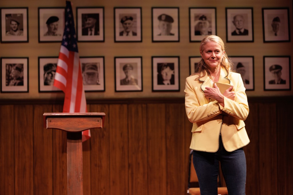 So when seeing What the Constitution Means to Me, a co-production with Soulpepper Theatre, Nightwood Theatre, Necessary Angel Theatre Company, and Talk is Free Theatre, the day after the election, my head was still swimming in the mucky angry mess of disbelief and grieving for a country that I had called my home for so many years. It’s pretty unforgivable. So when the lead character, Heidi Schreck, the playwright, portrayed cleverly and carefully by actor Amy Rutherford (Soulpepper’s A Streetcar Named Desire), greets us at the casual sweet beginning, I struggled a bit to want to take on the collective role assignment, as asked, of becoming one of the many old cigar-chomping white men sitting in attendance of a fifteen-year-old young lady giving a speech about the Constitution of the United States. Those were uncomfortable shoes to want to slip on that particular evening, but Rutherford’s Heidi greeted us with such a wide-open engaging smile, that I just had to let down my guard, step into the room, and go along with the request without hesitation.