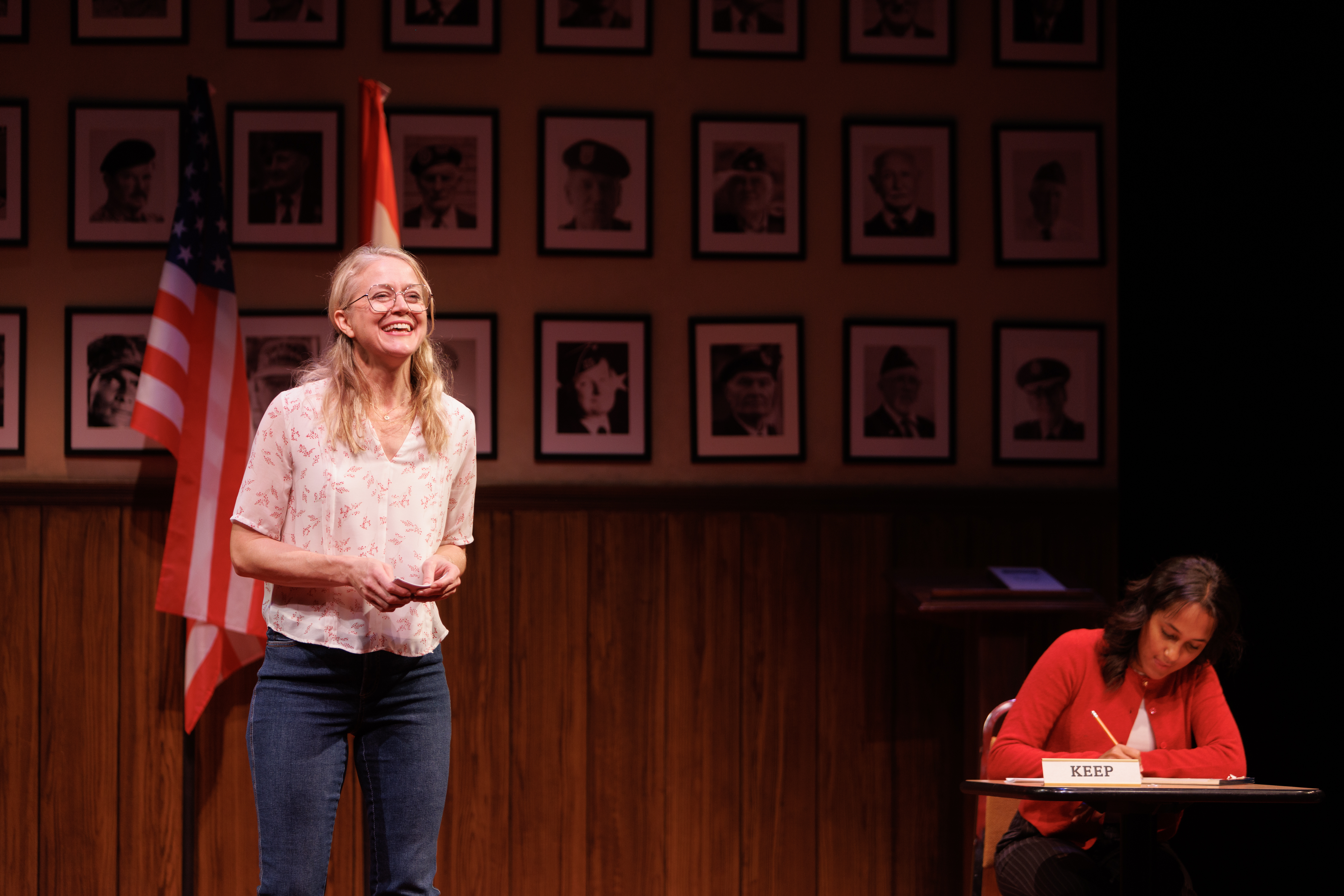 When I first saw this play off-Broadway at the New York Theatre Workshop, it just happened to be on one of the most upsetting days in American political history since that horrendous election eight years ago when Hillary lost her bid for the White House. I’m talking about the Kavanaugh hearings that led him onto the Supreme Court. After watching him get approved, I found myself thrust headfirst into a theatrical debate centered around the male-centric Constitution and the impact it and the male-dominated Supreme Court have and continue to have on a woman’s body. So it’s quite the surreal experience, yet again, to see another production of What the Constitution Means to Me on another absolutely horrendous day in American history. the night after the American election when a fascist rapist racist felon monster was reelected. I can’t even type to what office he will ascend to. It’s just too upsetting, infuriating, and frustrating to take in, even days later. The man has absolutely no right to be anywhere near that office. He has no respect for the wildly diverse country America is, nor this document; a document that means so much to playwright Heidi Schreck (Grand Concourse) and her 15-year-old self.
