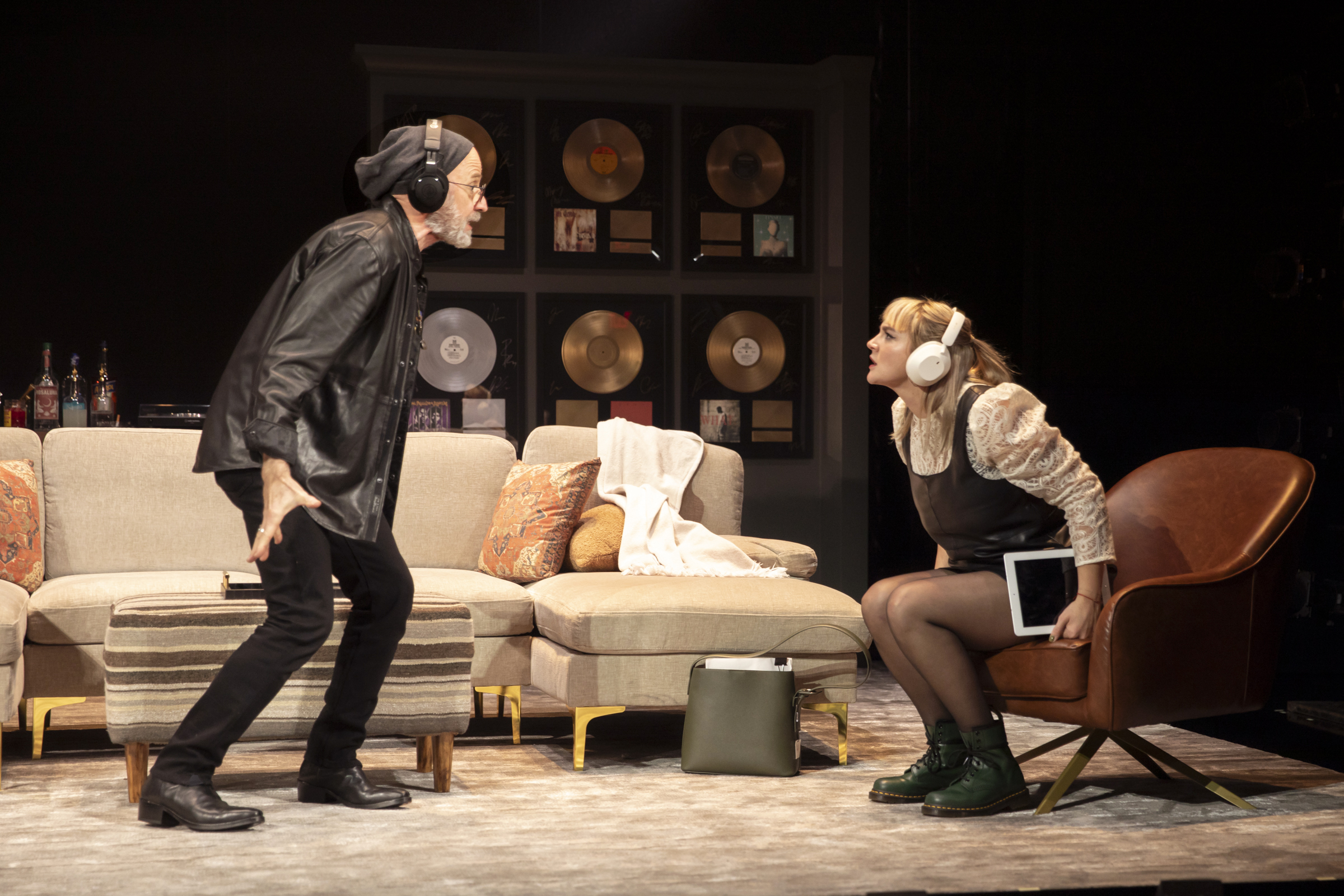 The rock music of BETTY (Off-Broadway’s BETTY Rules) drives us into this musical meeting of the minds, as legendary producer Gus, forcibly played by Arliss Howard (Public’s Killer’s Head), tries to find the whereabouts and undercurrent of a soul that may or may not reside in a possible new A&R hire. The interview is a complicated affair, with Gus’s trusted assistant, Abby, portrayed effectively by the detailed and always expressive Marisa Tomei (“Frankie“; RTC Broadway’s The Rose Tattoo), watching on, trying hard to protect them both from each other. This is the formulation of Babe, the new play by Jessica Goldberg (Refuge; “The Path“), that fails to survive itself, as we watch the misogyny of “attractive attracts attractive” dig its own recorded grave with a few too many inappropriate tools and disjointed objectives.
