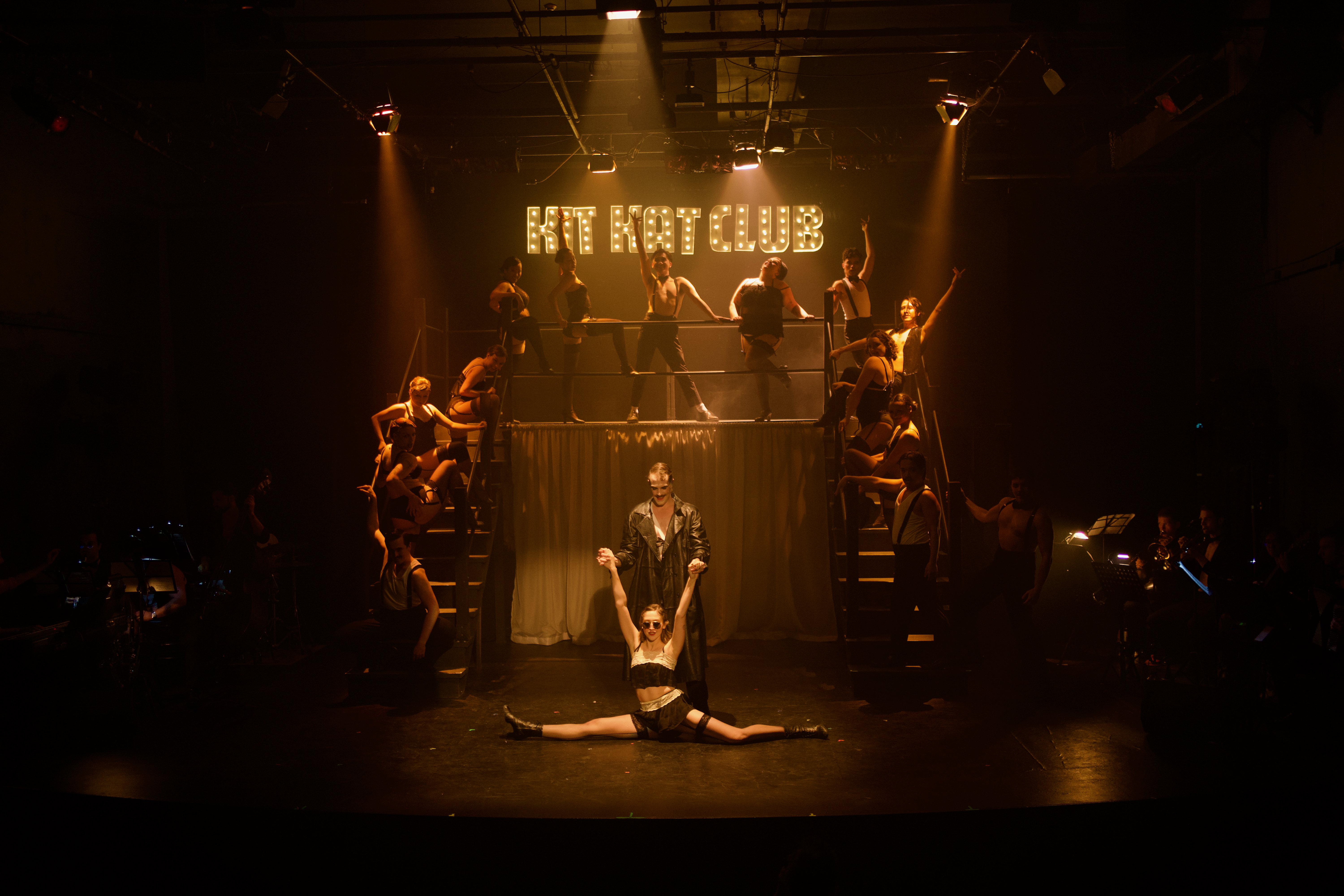 Welcome to Berlin,” we are told, quite accurately numerous times during the beginning scenes of this deliciously created spectacle. Crafted together in shades of darkness and light by Jack Phoenix and Reba Pyrah, the producer and directing team behind Horrowshow Productions at Alumnae Theatre in Toronto, the overall multi-layered effect of Cabaret at the Kit Kat Club is delightfully surprising and decadently entertaining, pulling us in completely from the first note played, thanks to the music direction by Jake Schindler. The energy is sublime, electric, and engaging, even when it is served up a bit overly cooked and overwrought. Divine decadence, one might say, with its creatively expansive eyes wide open in amazement, matched by a sneaky subtle intelligence gifting us with a production that easily rises above any expectations that I had walking into the space.