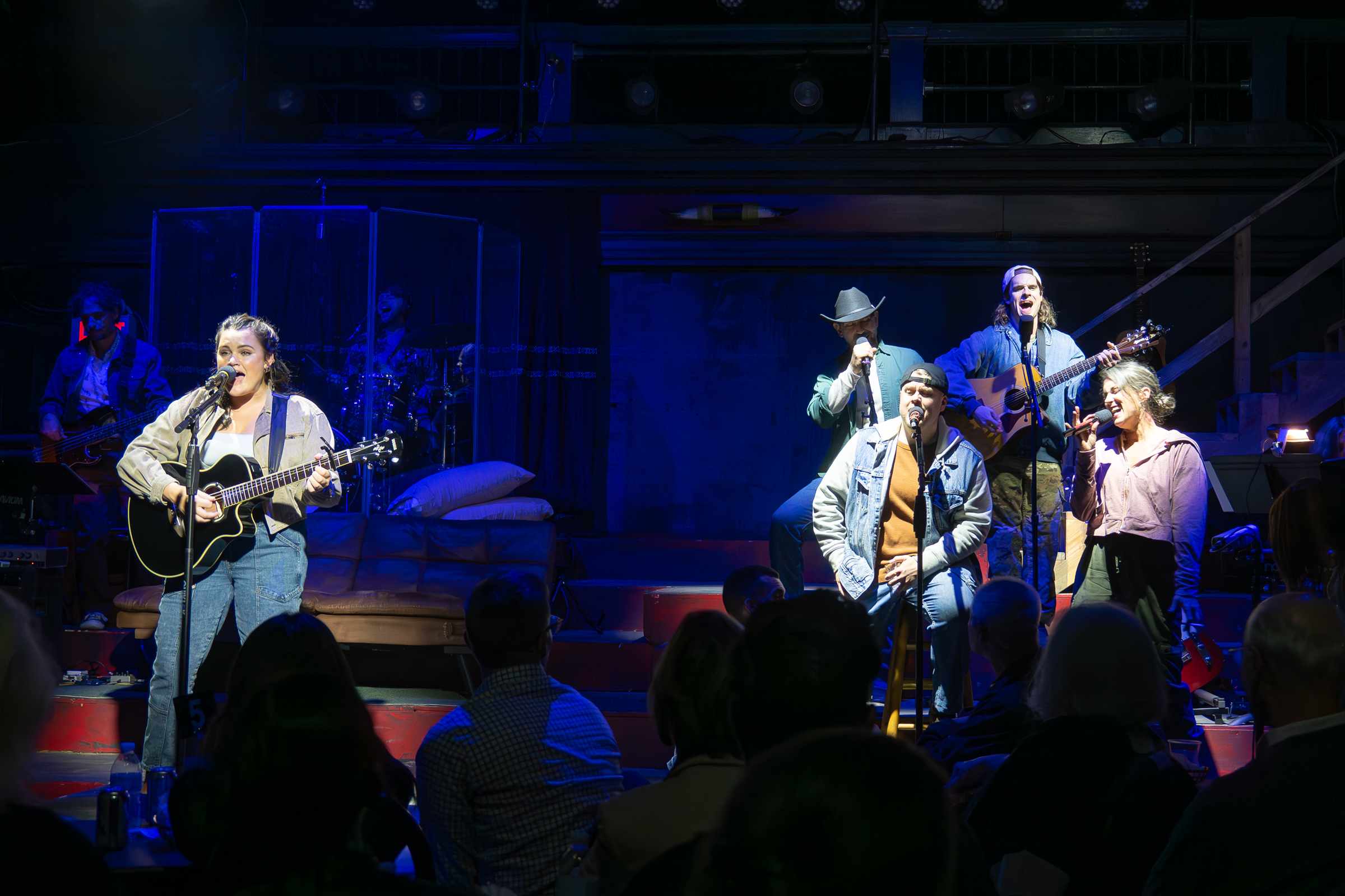 Into the mix strides another wannabe singer/songwriter who goes by the name of “23“, usually portrayed by the equally strong-voiced Casey Shuler (just check out the videos circulating on Bedlam‘s Instagram feed). But on the Saturday night that I was lucky enough to attend Music City (because of a potential winter storm moving my flight to NYC up one day and a sadly canceled performance of Who’s Afraid of Virginia Woolf at Canadian Stage in Toronto – which I will now not be back in time to see – which kills me to the core), the role was played by Grace Bernardo, who was lovely in the part, filling those cowboy boots charmingly, even though her voice didn’t exactly match as well with the other powerhouses that surrounded her. But the building conflictual chemistry was there, and the complicated melodrama of their wistful relationship drove this twangy, honky-tonk musical forward with heartfelt appeal. Although I truly embrace that sung question “23” delivers so well: “Who am I to want anything more?“, I do feel that I need to return to hear Shuler dive into the role once I get back to NYC.