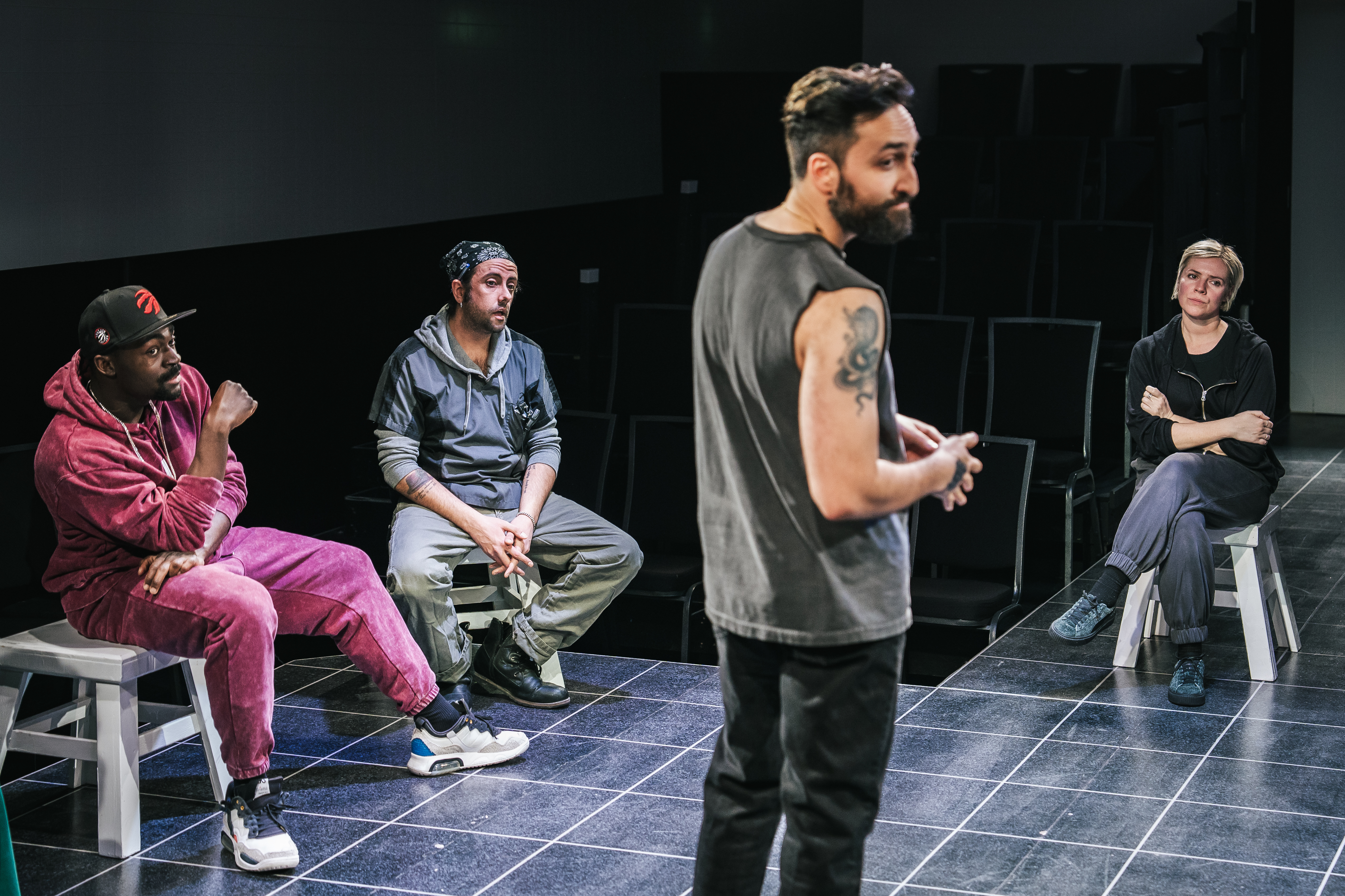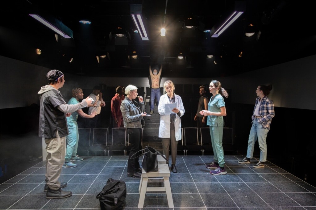 The rest of the company; the extraordinary Fiona Reid (Coal Mine’s Hedda Gabler) as her doctor, her therapist, and her mum; along with the subtle yet engaging Matthew Gouveia (Unit 102 Actors Co.’s The Late Henry Moss) as rehab worker Foster; the fascinating Farhang Ghajar (Soulpepper’s The Seagull) as fellow Mark; the astounding Oliver Dennis (Soulpepper’s King Lear/Queen Goneril) as the end-is-near fellow Paul as well as Emma’s dad; and the solidly talented ensemble members; Nickeshia Garrick (Maelstrom Art Collective’s Nasty), Sam Grist (Rock Bottom’s Fantasylover), Sarah Murphy-Dyson (Low Rise’s Her Inside Life), Kwaku Okyere (Tarragon’s Craze), and Kaleb Tekeste (Vertigo’s Clue) as fellows and emotional mirrors; find power in their form and function.