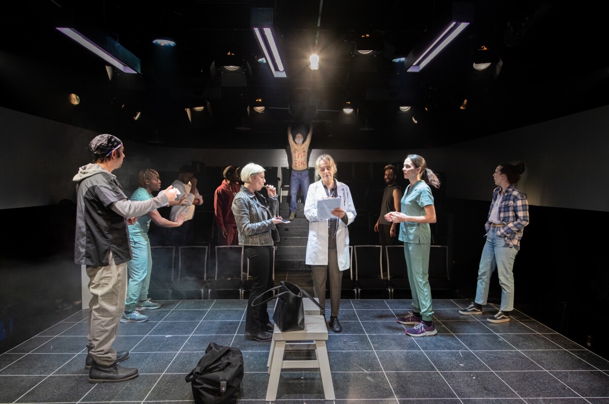 “I am a seagull,” she cries, determined to get through the scene, but alas, “no, that’s not right“. Yet, on the other hand, at The Coal Mine Theatre in Toronto, Louise Lambert (Coal Mine’s Detroit; Yerma) is getting it all perfectly right and chaotically concise in the phenomenal Canadian production of People, Places & Things. It’s a whirlwind, hyperactive performance, taking over the immersive stage, designed impeccably by Steve Lucas (Coal Mine’s Appropriate) with a vibrant, intoxicating yet wisely constructed force. Lambert’s character, the actress, going by the name of Emma, can’t quite get her lines out as written as she takes the stage as Nina in the first few minutes of Duncan Macmillan’s (1984) thrilling and jolting play about addiction, first staged at the National Theatre‘s Dorfman Theatre in London in 2015. And once the four walls come crashing down, all the Ninas and Emmas come out to play with a brutal and aggressive dynamic engagement.