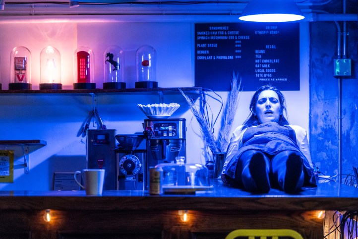 Orange you glad,” one might say, as she whooshes into one of the most creative unravelings I have witnessed in a long time. “Thanks a Latte” for it all, as Small’s Performance Review is anything but. It’s huge and inspiring, compelling, painful, and endearing, all delivered expertly by a creator, writer, and actor who is not afraid to showcase her superpower (and her vulnerability) as she gallops with a wide-eyed focus into that horse sanctuary. Playing her favorite music while gazing out the window or washing up after the crowd, Smart is openly ready and willing to let us in and engage. Don’t miss this moment, and not just because the chocolate chip cookie is to die for. You’ll leave completely tuned in and unable to shake all the layers and levels that come across the bar as ordered in this masterful piece of storytelling and theatre writing. I’m giving Performance Review the highest score possible.