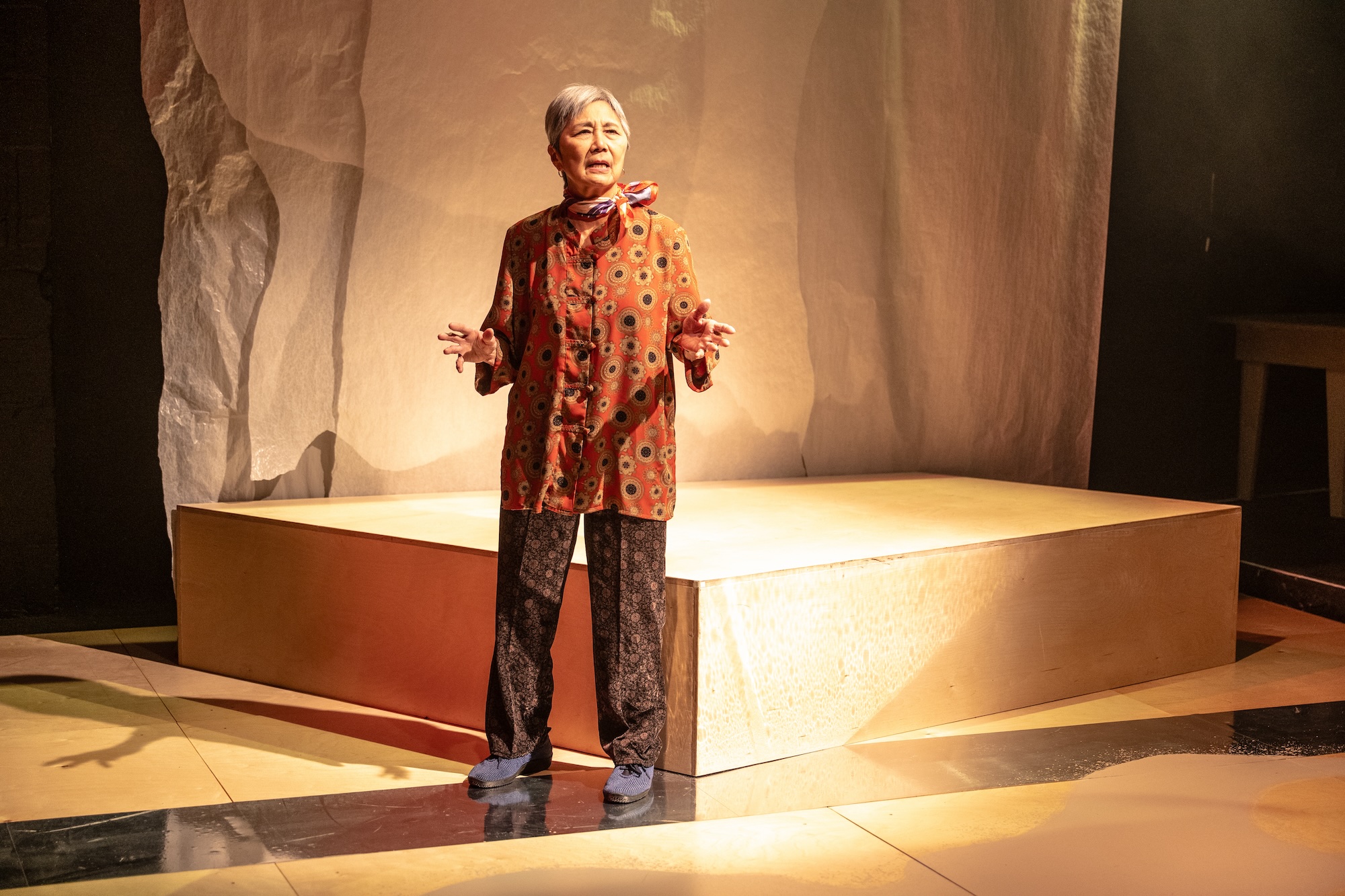 But it’s really Pham and her strongly crafted Kai alongside Kamino’s engaging portrayal of the grandmother that gives Carried by the River its clarity and emotional current, without ever pulling the symbolism and cultural engagement too deep and down under into its moving flow of river water. The play secretly and quietly celebrates the idea of roots spread wide and far, like what appears to be a solitary tree, entwining all their melancholy memories and roots together in a stance of strength and beauty. The red string connection is sometimes jagged and tangled in its storylines, requiring the same level of patience and stillness that Lao Lao tries to impart on Kai, to keep her faith in her fishing, and to keep her from running the wrong way against the current. Yet, in the end, the overall arc feels gently satisfying, like the flowing of a beautiful river filled with nutrients and maternal love. Even if the red threads aren’t neatly tied up in a loving familial bow in those final last moments of engagement.