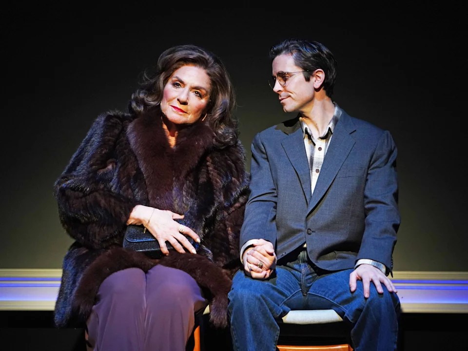 There are lots of moments of gentle smiling and laughs that will be had inside off-Broadway’s Theater 555 on w42nd Street as the play, directed the care by Noah Himmelstein (Lincoln Center’s I Am Harvey Milk), rides easy through the years of interactions between the two. There’s not a lot of deeper learning to be had here between Bobbie, an attractive gay man, played adorably and honestly by Matt Doyle (Broadway’s Company), trying to find his way through the world as a writer and lover of problematic men, as his mother, Maria Collavechio, played to perfection by a very game Caroline Aaron (Amazon’s “The Marvelous Mrs. Maisel“), stands nearby, ready with a loving, tough-love remark. She’s there, by her phone, ready and willing to engage and help out, even if her attachment is laced with a sharp wit and a warning or two, yet forever anchored in unconditional love and care. Inside this strongly orchestrated mother-son two-hander, the two actors find a strongly etched chemistry that registers, making us believe in the roughness of their relationship like so many others we’ve witnessed in films and on stage over the years. One can’t help but think about Lainie Kazan and Bette Midler’s mother-daughter relationship in the 1988 film, “Beaches“, or the more tense pairing of Estelle Getty/Ann Bancroft and Harvey Fierstein in his “Torch Song Trilogy“, but Lombardo finds his own way, even if many of the lines and jokes feel as old as vaudeville (even though they are new), with a gay sharpened edge and a relatively poorly played fluted twist in the end.