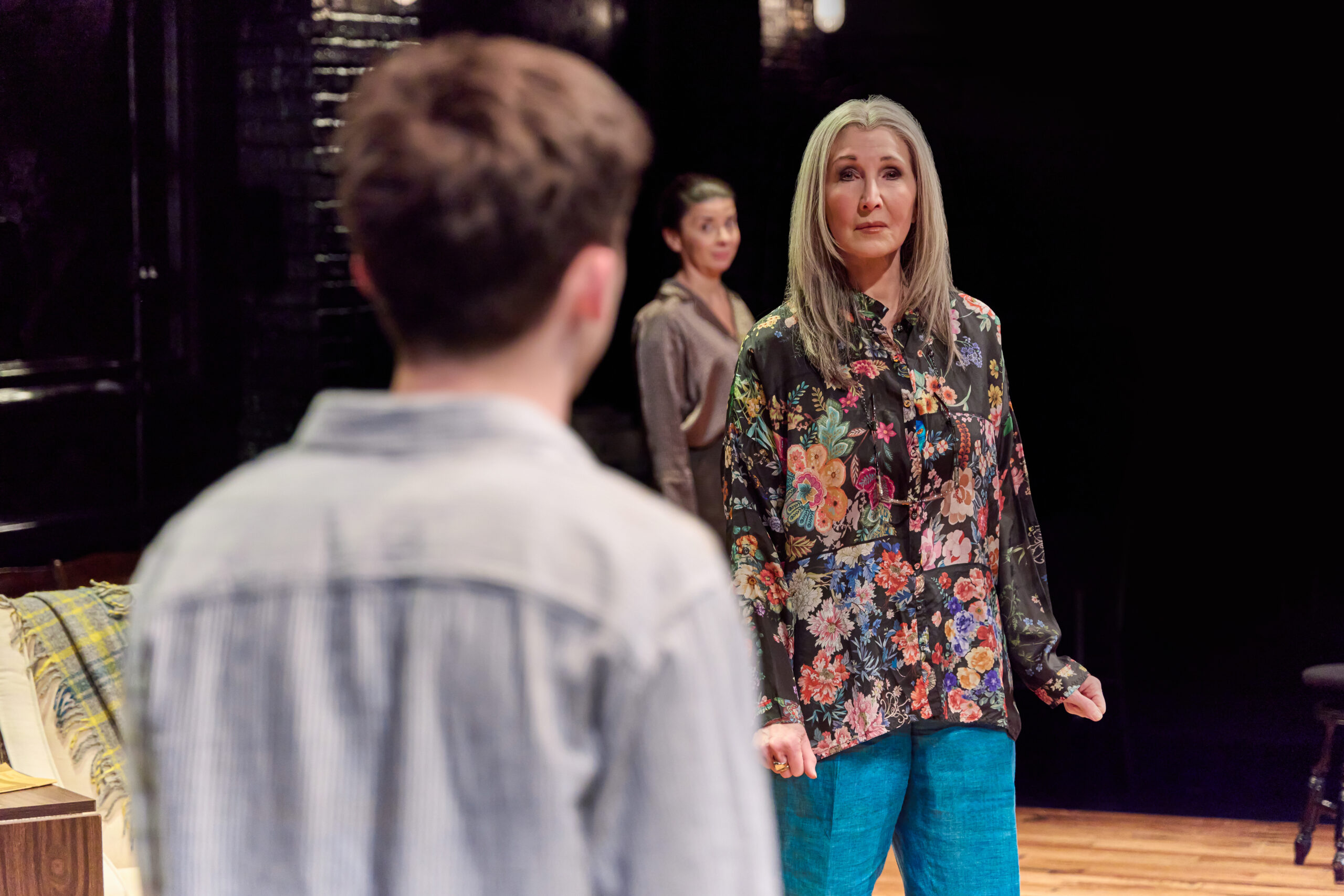 It’s a powerful, compelling formula, this Harmon family drama, and as directed with a cool, slow hand by Trip Cullman (Broadway’s Cult of Love), We Had A World finds its footing in as mesmerizing a way as the way Nanna altered and expanded the mind of Joshua. But the clean-up that is held and remembered by Ellen is also as important and traumatizing as any of the one-sided Paris stories told to Joshua about his fabulous Nanna. And they pack a punch, especially when the flip side of that recording is played back from a different vantage point and angle by mother Ellen, on that open wide stage, designed with crowded deliberation by John Lee Beatty (Broadway’s Sweat), with simplistic lighting by Ben Stanton (Broadway’s Maybe Happy Ending), tender costumes by Kaye Voyci (MTC’s Morning Sun), and a solid sound by Sinan Refik Zafar (Broadway’s English).