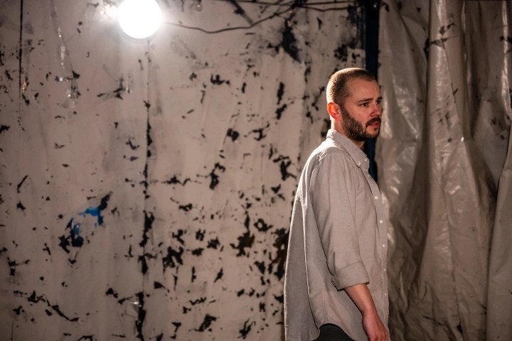 John moves with nervous stealth around the space, from one faraway end to the other, jumping in and out of the rectangular ring with his different loves. The war of desire is on, and he is paralysed, and sometimes annoyingly silent, by this surprising twist of attraction and his inability to see his way forward. They both demand a decision, and he gives them what they ask for when they ask for it, but as soon as the next match resumes, the game and decision shift. Is he a perpetual pleaser of whoever is before him? Most definitely, and as frustrating as it is to all that surround him, the dilemma is forever real and honestly confusing. The dialogue, as written by Mike Bartlett (King Charles III), is sharp and direct, with characters pinpointing the problems with clarity. “You needed to be stronger,” John is told, but he is never quite sure what it is he truly and ultimately wants. And what does strength have to do with it all, he wonders. While also agreeing with the statement. “Am I going to miss his cock, twitching, throbbing?” John just doesn’t know, stating empathetically that he sees himself as two unique personas, different with each, yet pulled by the other. The shift doesn’t really come off as authentically as it needs to be, but the emotionality that hangs in the echoing air does bring forth some level of clarity and insight.
